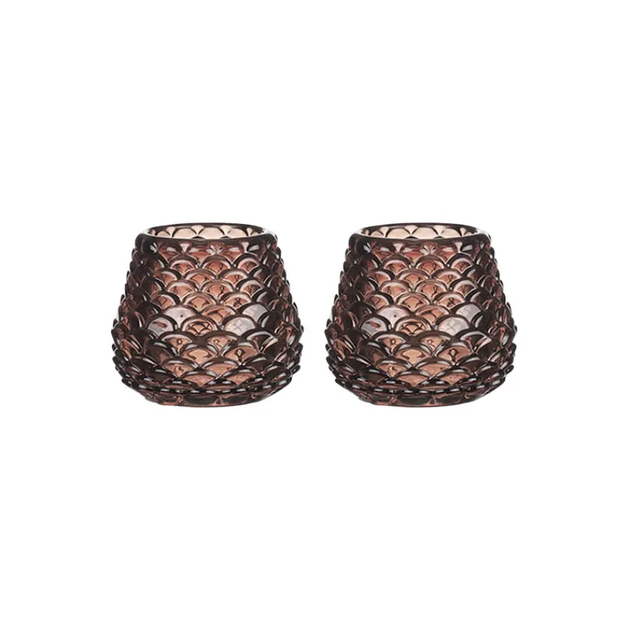 CHRISTIANIA 1739 Telysholder Furu Glass 6,5cm Brun 2pk