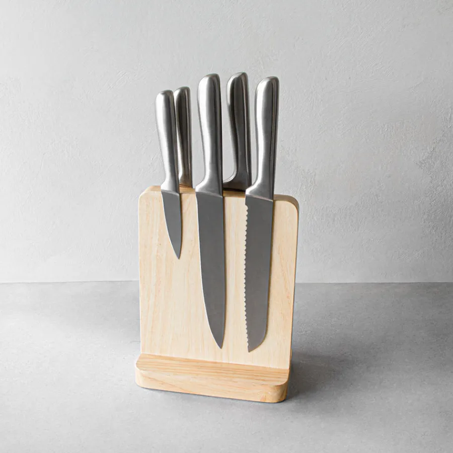 Det anbefales å bruke knivsliper fremfor slipestål og vaske for hånd for å lengre bevare skarpheten på knivbladene.