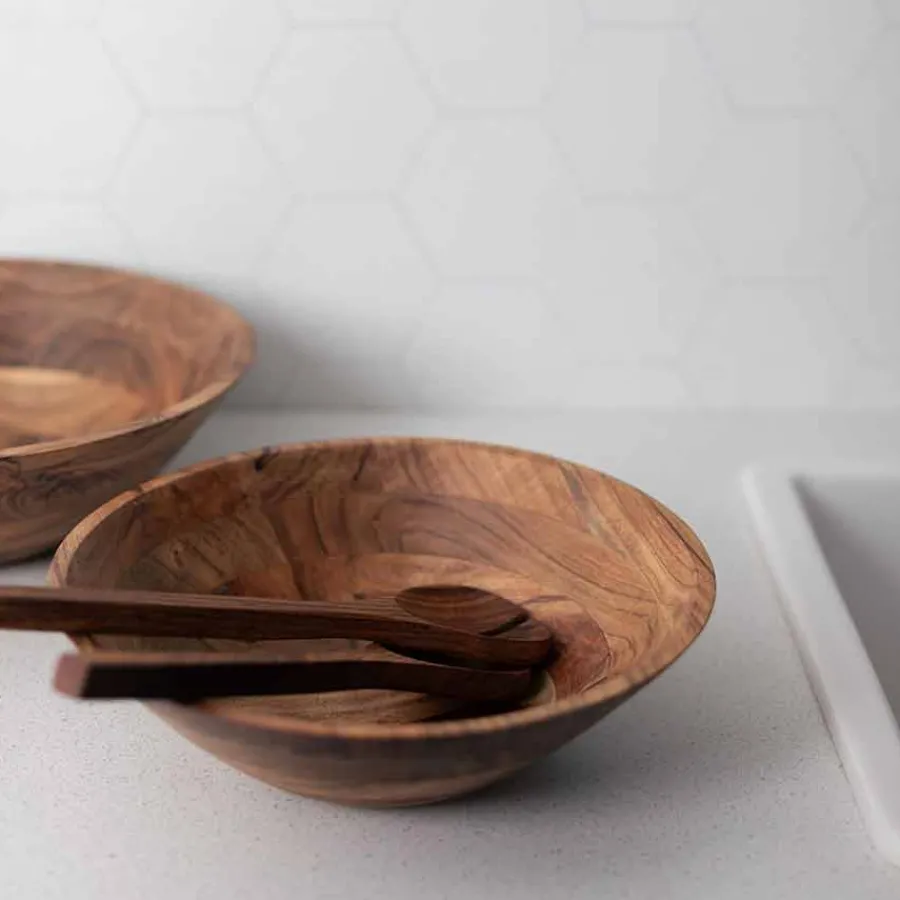 En stilren salatbolle i acacia-tre som gir en varm og naturlig følelse til borddekkingen. Perfekt størrelse for små til mellomstore salater, frukt eller snacks. Treet gir et unikt mønster, noe som gjør hver bolle helt spesiell. Kombiner den med Woods salatbestikk for en helhetlig serveringsopplevelse.