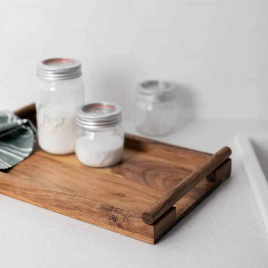 Et elegant serveringsbrett i solid acacia-tre, perfekt for alt fra tapas til frokost på sengen. Den naturlige trestrukturen gir et rustikt og stilrent uttrykk som passer til enhver borddekking. Med en romslig flate er det ideelt for både servering og dekorasjon på kjøkkenet. Brettet har en slitesterk overflate som tåler daglig bruk, men anbefales håndvask for å bevare kvaliteten.