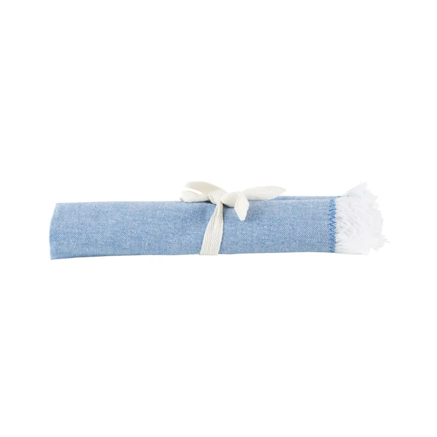 Den lyseblå fargen gir et lett uttrykk og kan enkelt matches med både nøytrale og fargerike duker og serviser. Serviettene kan brettes på ulike måter for å skape variasjon og stil. De er vaskbare på mild maskinvask og dermed et bærekraftig alternativ til papirservietter.