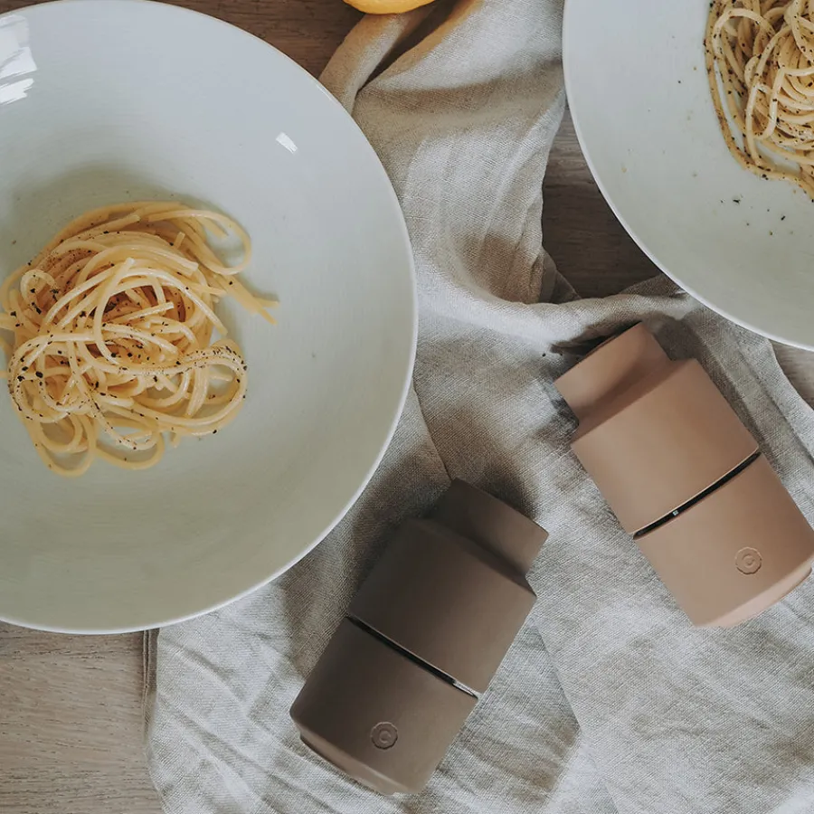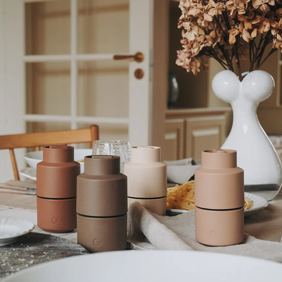 Oppdag funksjonell design i lekent format med Billund krydderkvern fra CrushGrind® i den varme nyansen All Spice. Med sitt smarte upside-down-design unngår du krydderrester på bord og benker – samtidig som den elegante formen gir et moderne uttrykk.Kvernen er laget i et lett og slitesterkt biokomposittmateriale, og har en praktisk silikonplugg i bunnen som gjør påfylling enkel. Den keramiske CrushGrind®-mekanismen gir deg justerbar kverning, perfekt til både salt, pepper og tørre krydder.Med sin stilrene form og praktiske funksjoner passer Billund perfekt inn i ethvert moderne kjøkken. En liten, men viktig detalj for både smak og estetikk!