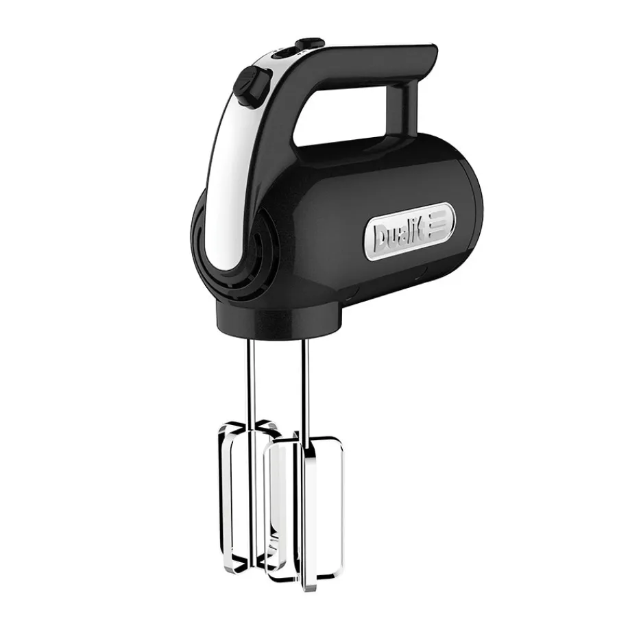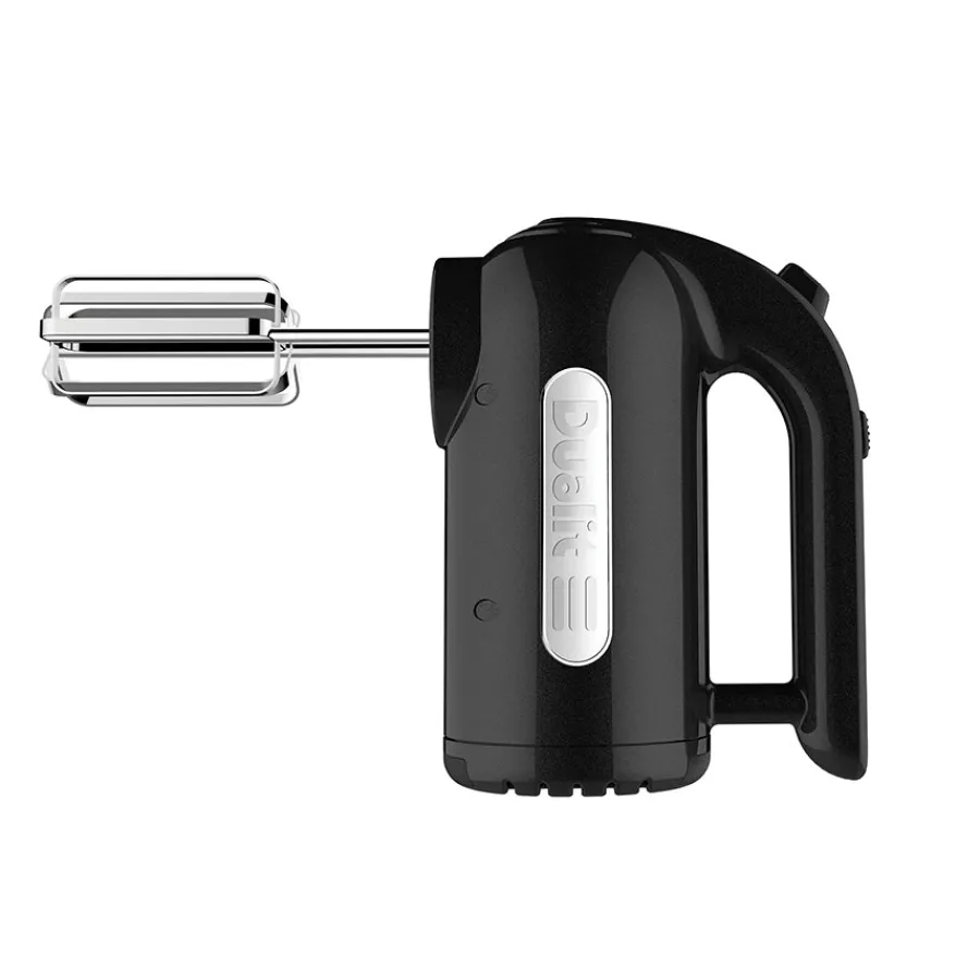 Sort håndmikser fra Dualit. Håndmikseren kommer med en kraftig motor på 400 watt som gjør den ideell til blanding av ulike typer ingredienser – alt fra pisking av egg til å håndtere deig. Følger med flat visp, ballongvisp og deigkrok. 2 års garanti.