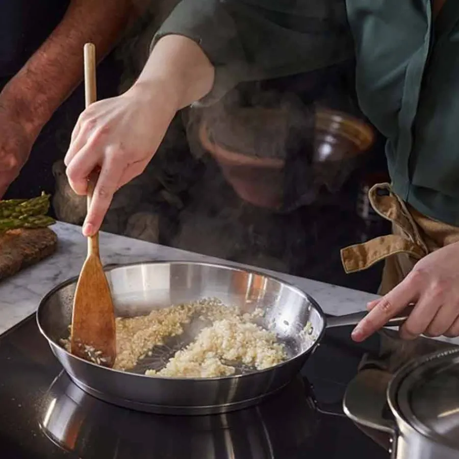 Stekepannen på 28 cm fra Fiskars All Steel Pure, er en tidløs stekepanne designet for lang levetid og overlegen ytelse. Laget av 90 % resirkulert rustfritt stål, reduserer den karbonavtrykket med hele 92 % sammenlignet med industristandard. Med en ubelagt overflate tåler den svært høye temperaturer, ideell for bruning og steking av ulike ingredienser. Aluminiumskjernen sørger for rask og jevn varmefordeling på alle platetopper, inkludert induksjon.Pannen har et ergonomisk rustfritt stålhåndtak som tåler både høye temperaturer og ovnsbruk opptil 270 °C. Takket være de nøye utvalgte materialene er pannen så å si evigvarende, med et klassisk design som forblir aktuelt i mange år. Uten belegg trenger pannen litt ekstra fett under matlaging, men den leverer enestående stekeresultater ved både lavere og høyere temperaturer.