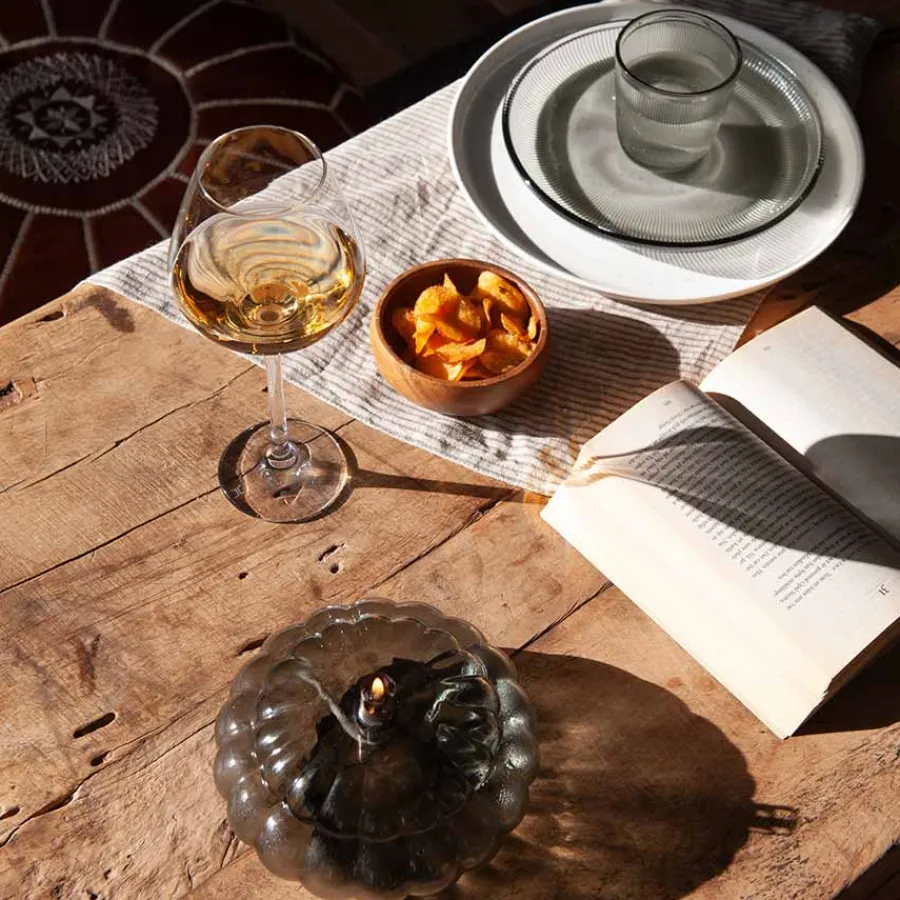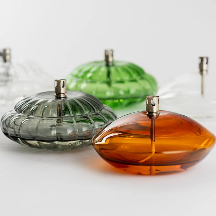 Oljelampe på 15 cm i fargen røkgrå fra hadeland Glassverk og serien Aurora. Med et optisk glass og en delikat gråtone skaper oljelampen en stilrik og avslappende atmosfære til stuen. Oljelampen er et smykke i seg selv når den ikke er tent, og gjør seg flott til de ulike stilarter. Olje kjøpes separat.