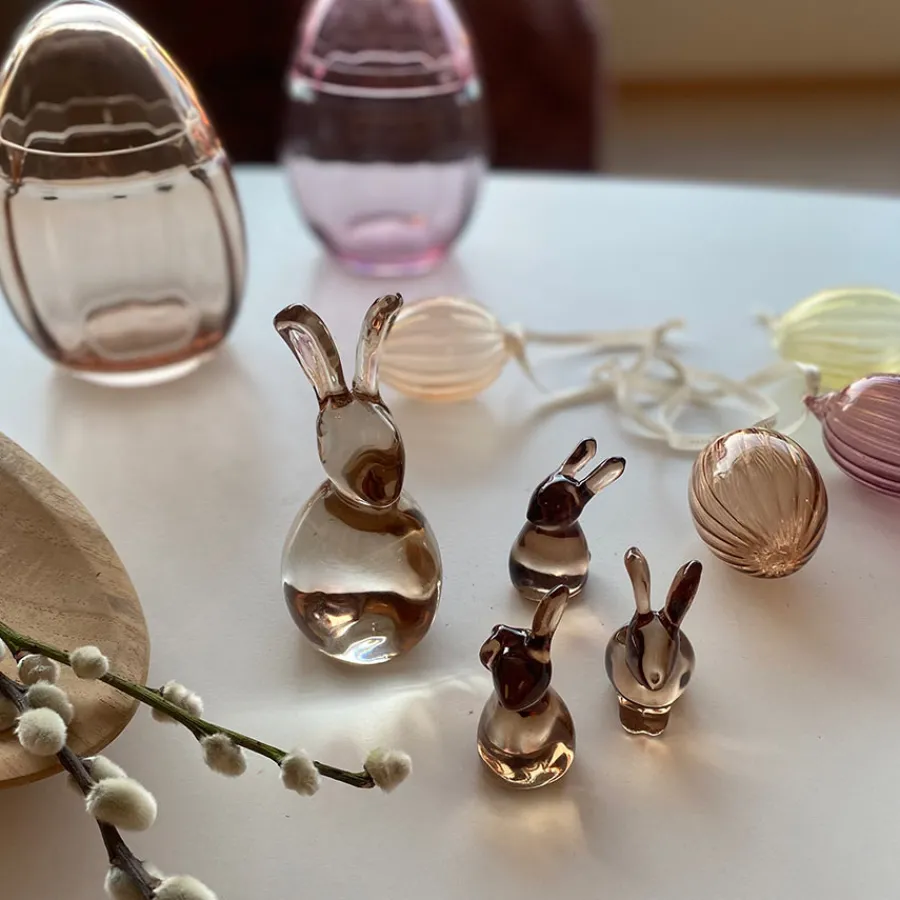 Skap en varm og stilfull påskestemning med disse nydelige harene i brunt glass fra Hadeland Glassverk. Settet består av 3 små harer på 5 cm, designet av Lisbeth Lutnæs, og passer perfekt som tidløs påskepynt fra Hadeland Glassverk. De elegante figurene tar seg like godt ut på hytta som hjemme, og kan kombineres med den større matchende haren for en helhetlig dekor. Plasser dem på bordet, i vinduskarmen eller som en del av årets påskeoppsats. Gi påsken et elegant preg med glassfigurer av høy kvalitet som varer. Begrenset opplag – sikre deg dine nå!