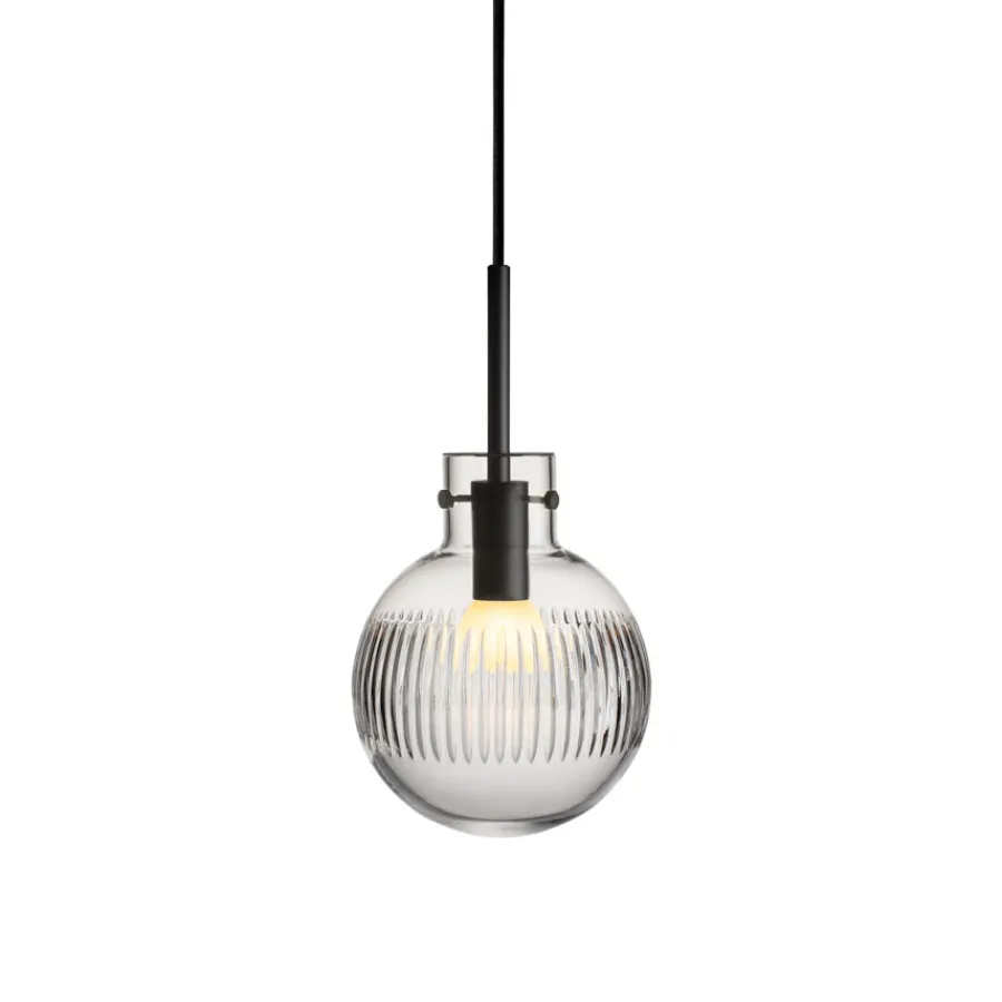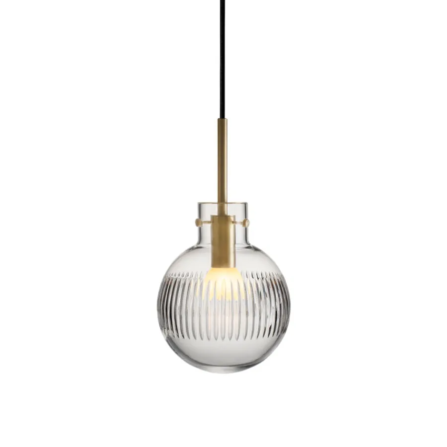 Pendellampen Krystallkule Skjær fra Hadeland Glassverk er et ekte kunstverk i lys. Basen er en helt glatt, munnblåst krystallkule, som videre foredles med et elegant, vertikalt skjær-mønster – håndslipt med stor presisjon over hele overflaten. Resultatet er en lampe som ikke bare lyser opp rommet, men også tilfører det en følelse av tidløs eleganse.