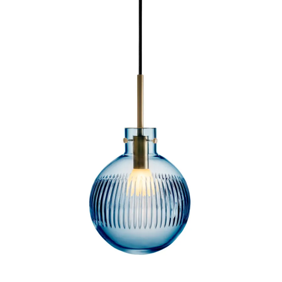 Lampen munnblåses og håndslipes på Hadeland Glassverk, der flere enn syv håndverkere setter sitt preg på sluttresultatet. Den dype stålblå fargen gir lampen et eksklusivt og moderne uttrykk, som gjør seg like godt alene som i en klynge over bord eller kjøkkenøy.