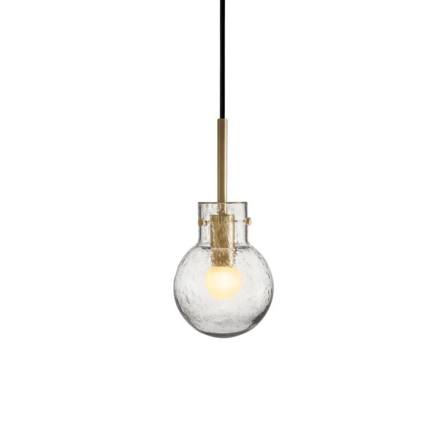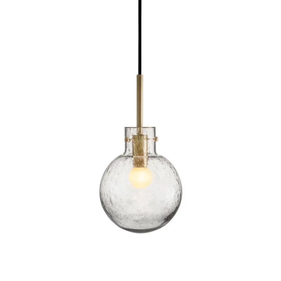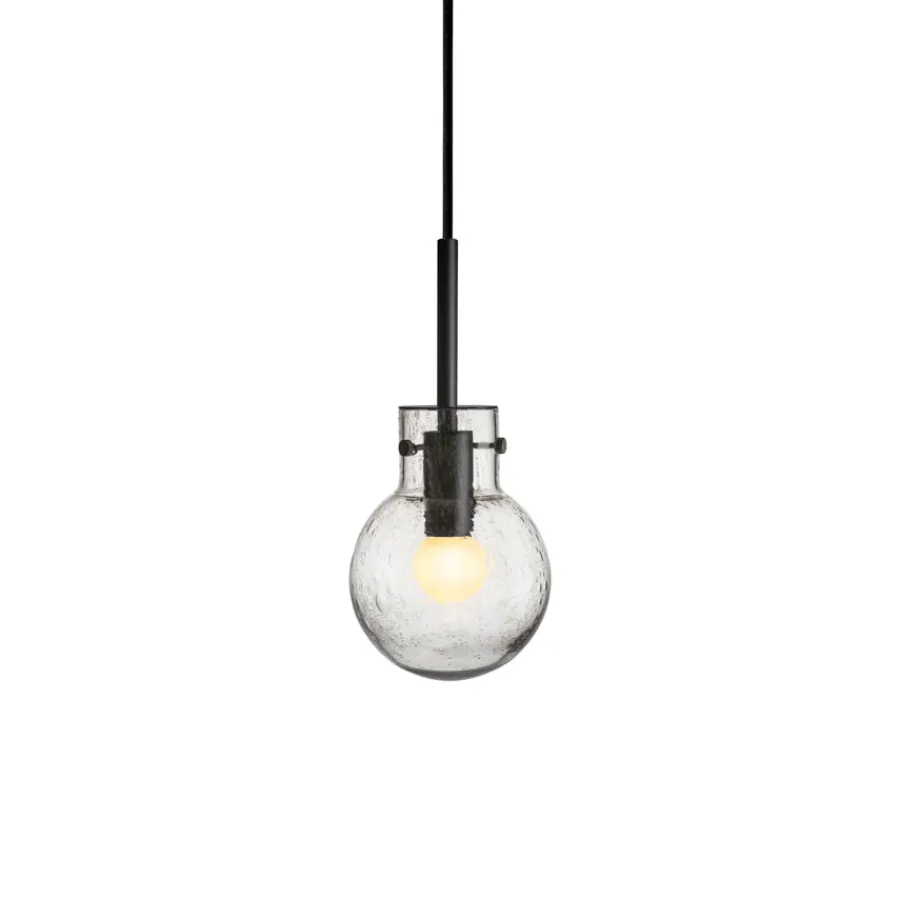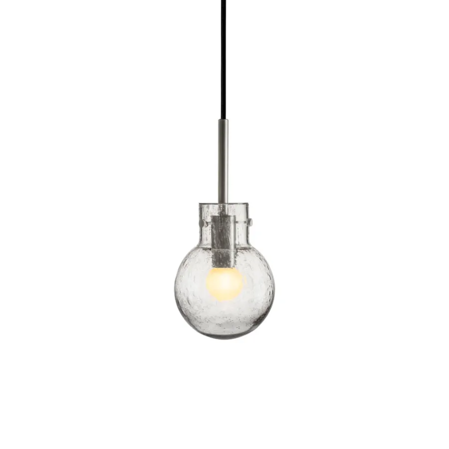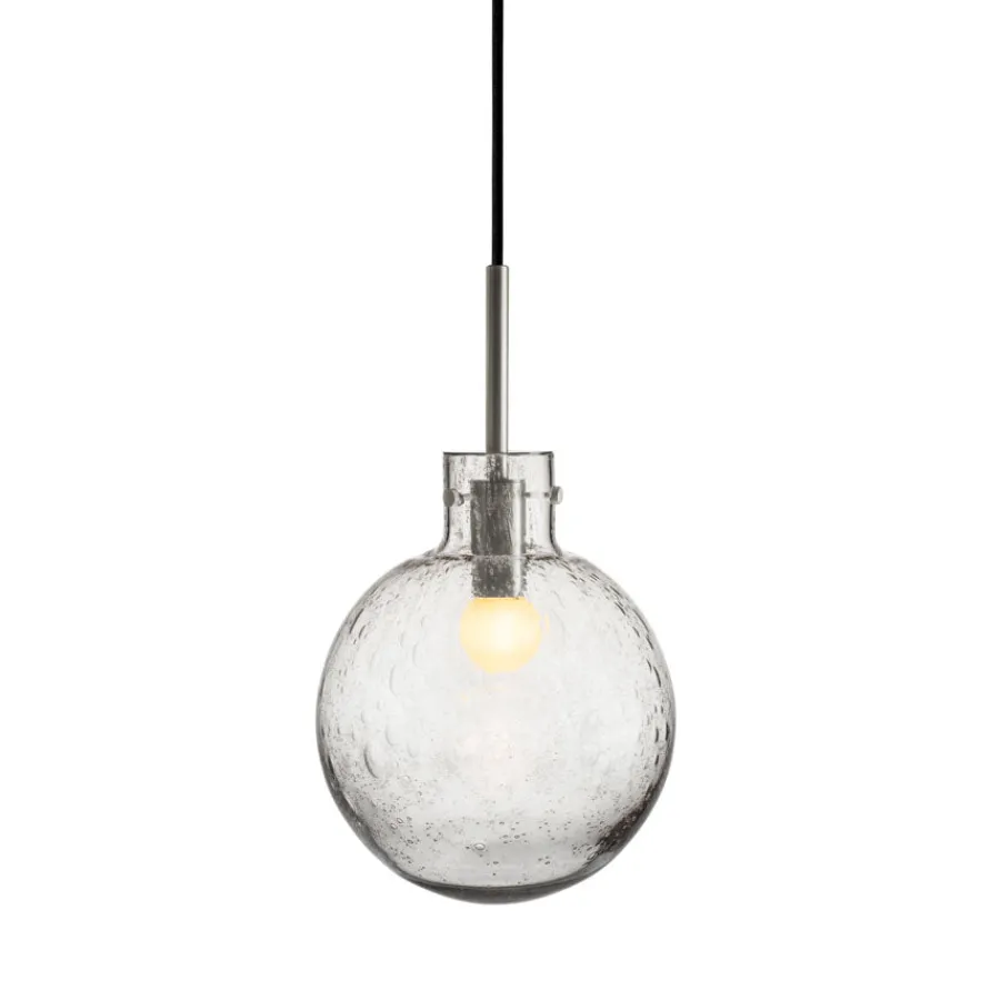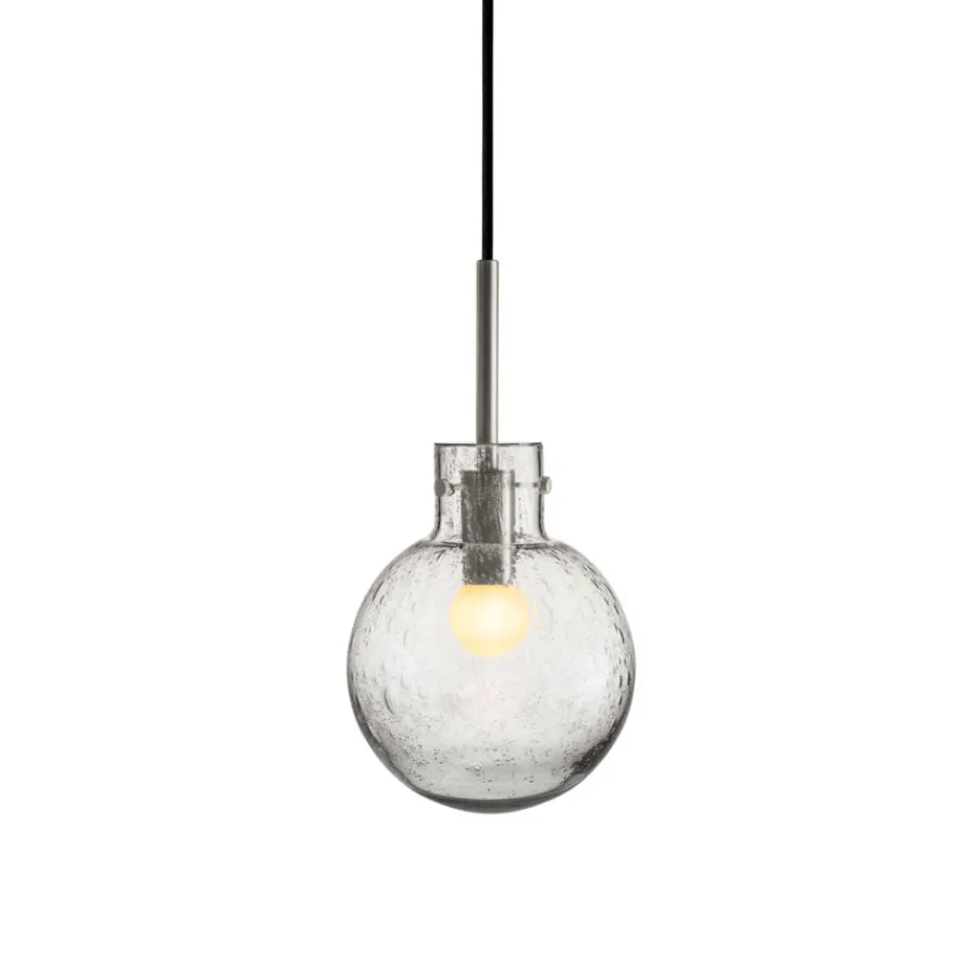 Krystallkule Soda fra Hadeland Glassverk er en pendellampe med sjel og historie. Inspirert av 1950-tallets eksperimentelle glasskunst, benytter den seg av den karakteristiske soda-teknikken – en metode som skaper en vakker, boblete struktur i glasset. Ved å drysse mineralpulver på den glødende glasskulen og varme den opp igjen, dannes små luftbobler som gir hver kule et unikt og levende uttrykk.