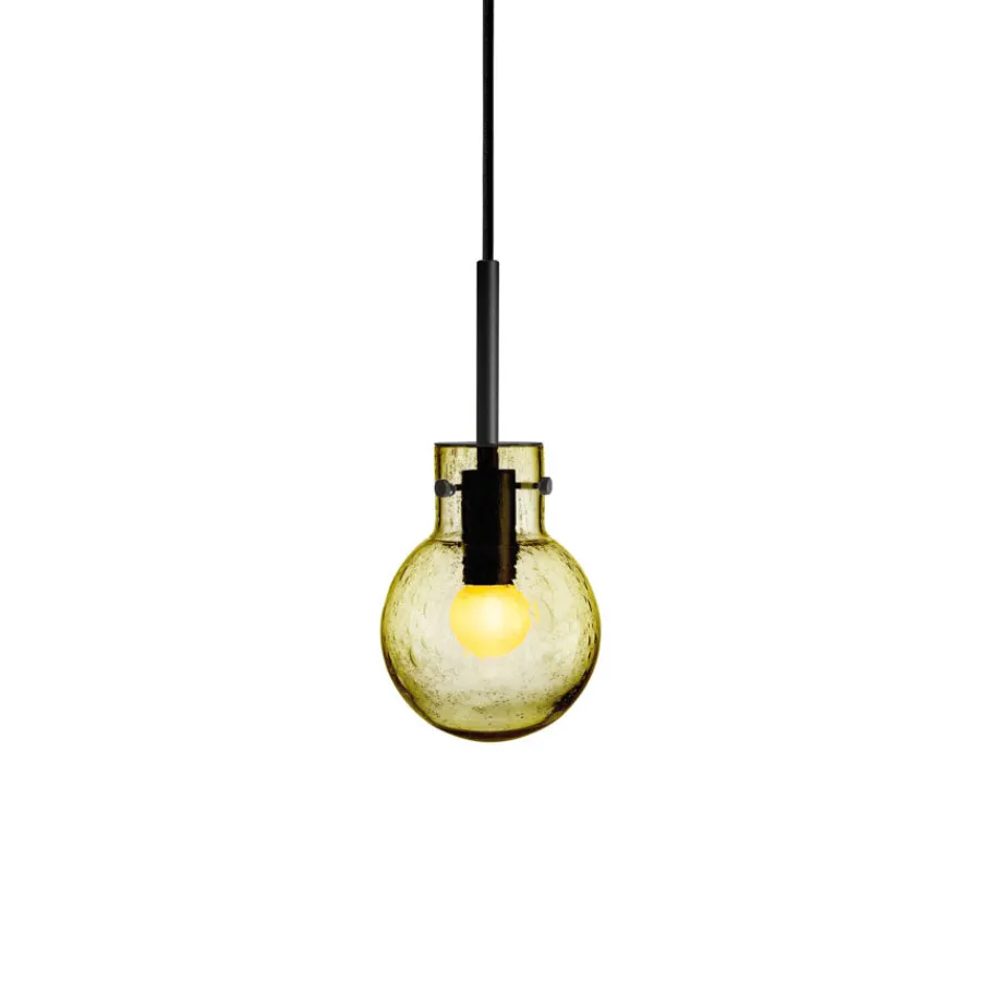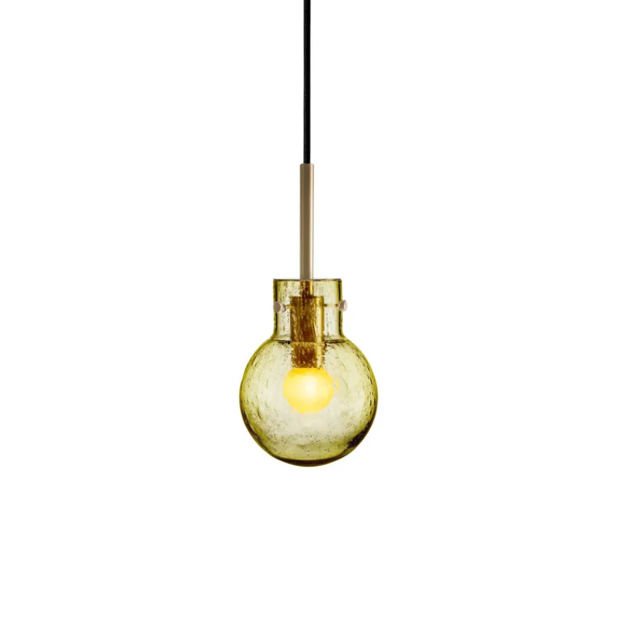 Krystallkule Taklampen i olivenfarget soda-glass er inspirert av naturens organiske nyanser. Soda-teknikken skaper luftbobler i glasset, noe som gir et levende og variert lysbilde.Hver lampe munnblåses og håndslipes på Hadeland Glassverk. Over syv håndverkere bidrar til at hver kule blir et unikt kunstverk. Den olivengrønne fargen gir et elegant og jordnært preg, som passer både alene og i kombinasjon med flere.