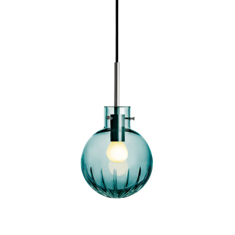 Munnblåst og håndslipt ved Hadeland Glassverk, der flere enn syv håndverkere bidrar i prosessen, er dette en lampe som bærer tydelige spor av ekte håndverk. Den blågrønne fargen tilfører interiøret en frisk og harmonisk karakter, som gjør lampen til et naturlig blikkfang.