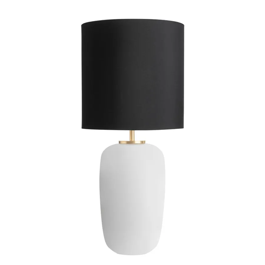 Vega Bordlampe Matt Hvit gir et rent og tidløst preg til interiøret. Den munnblåste glassfoten i matt hvitt gir en rolig og elegant base, mens tekstilskjermen sprer lyset jevnt og behagelig. Lampen passer like godt i en lys, minimalistisk stue som på nattbordet eller skrivebordet.