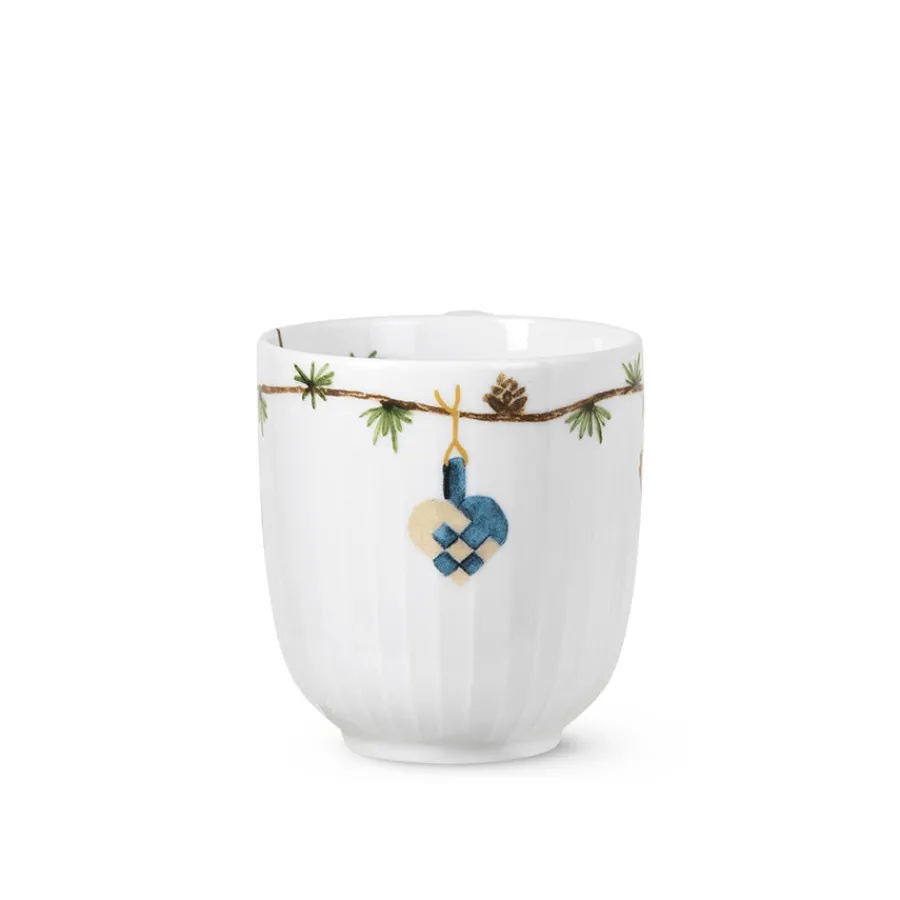 Krus fra Kählers juleservise Hammerhøi Jul. De flotte krusene blir fornyet hvert år med nytt motiv slik at du kan utvide julekrussamlingen år etter år. Juleserviset kombinerer et moderne uttrykk med tradisjonsrike dekorasjoner som kan arves og brukes i generasjoner.