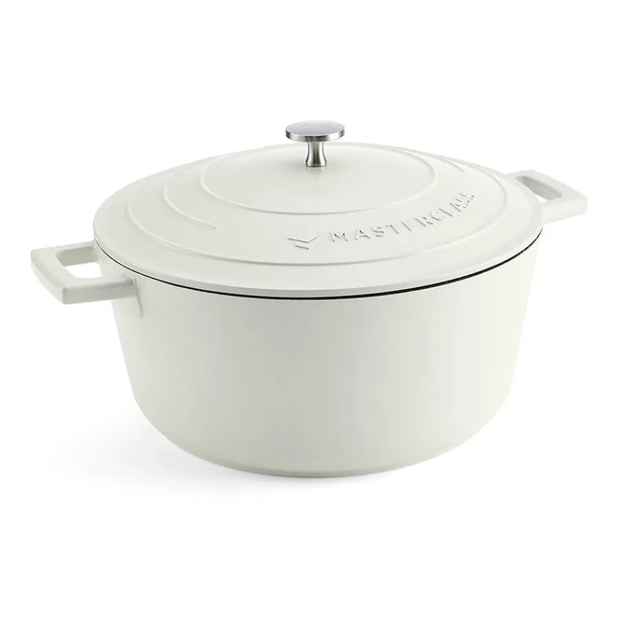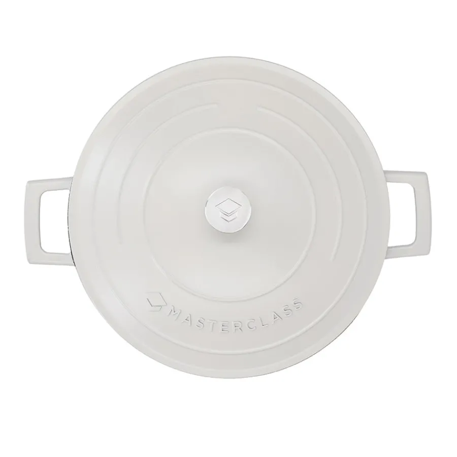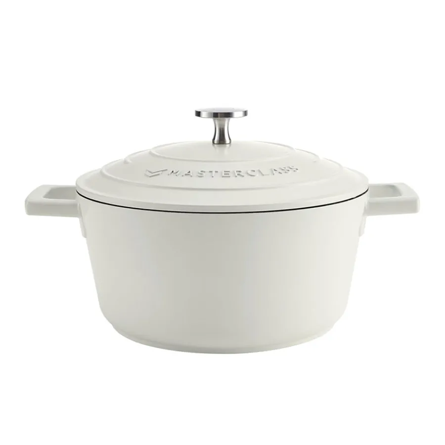 Gryte i støpt aluminium fremstilt i fargen krem fra Masterclass. I tillegg til det stilfulle designet gir aluminiumsgryten de gode robuste fordelene som en støpejernsgryte, og utmerket varmeledende egenskaper. Materialet er lettere enn støpejern, som gjør gryten litt enklere å håndtere, og er forsterket med et dobbelt ripesikkert belegg som fungere som non-stick. Gryten tåler alle koketopper inkludert induksjon, stekeovn og rengjøring i oppvaskmaskin.