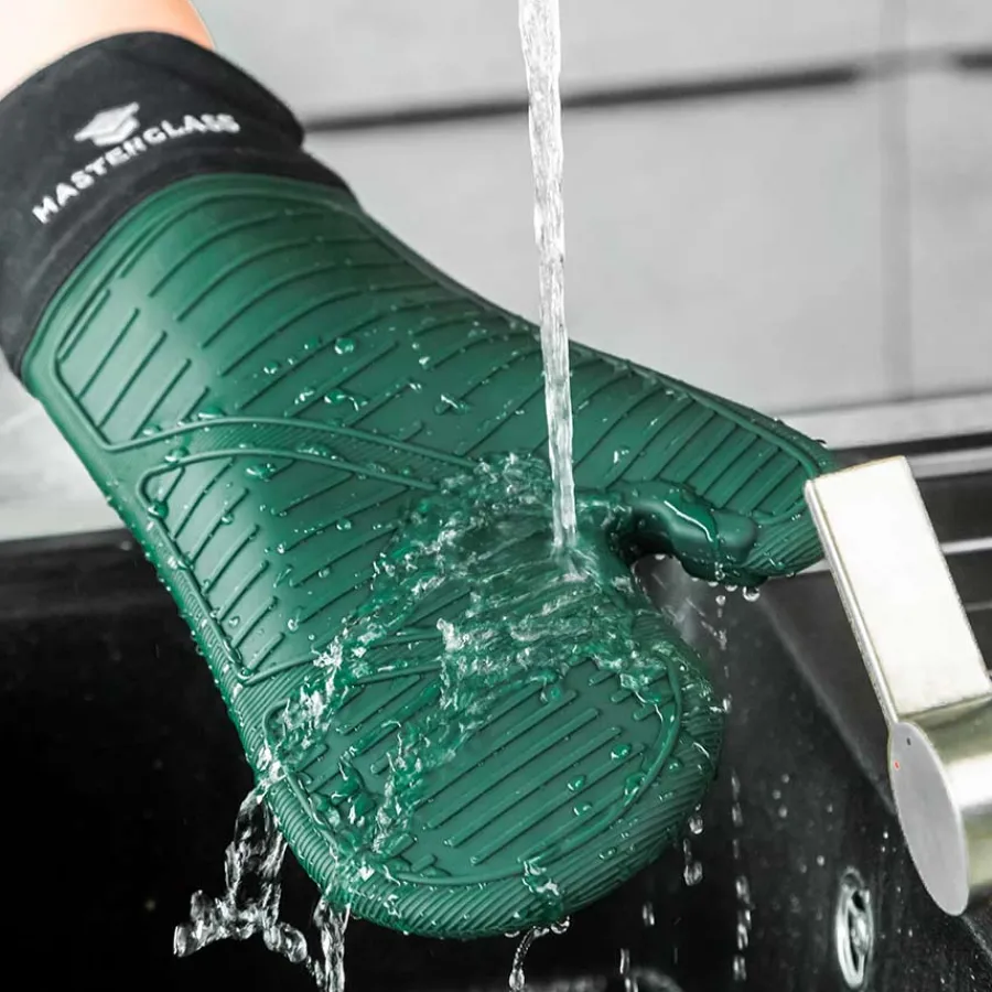 Grytevott i grønn silikon, med bomullsvatt fra Masterclass. Deilig komfortabel grytevott designet for å trygt håndtere varme brett, former og panner, og gir den perfekte balansen mellom komfort og beskyttelse.