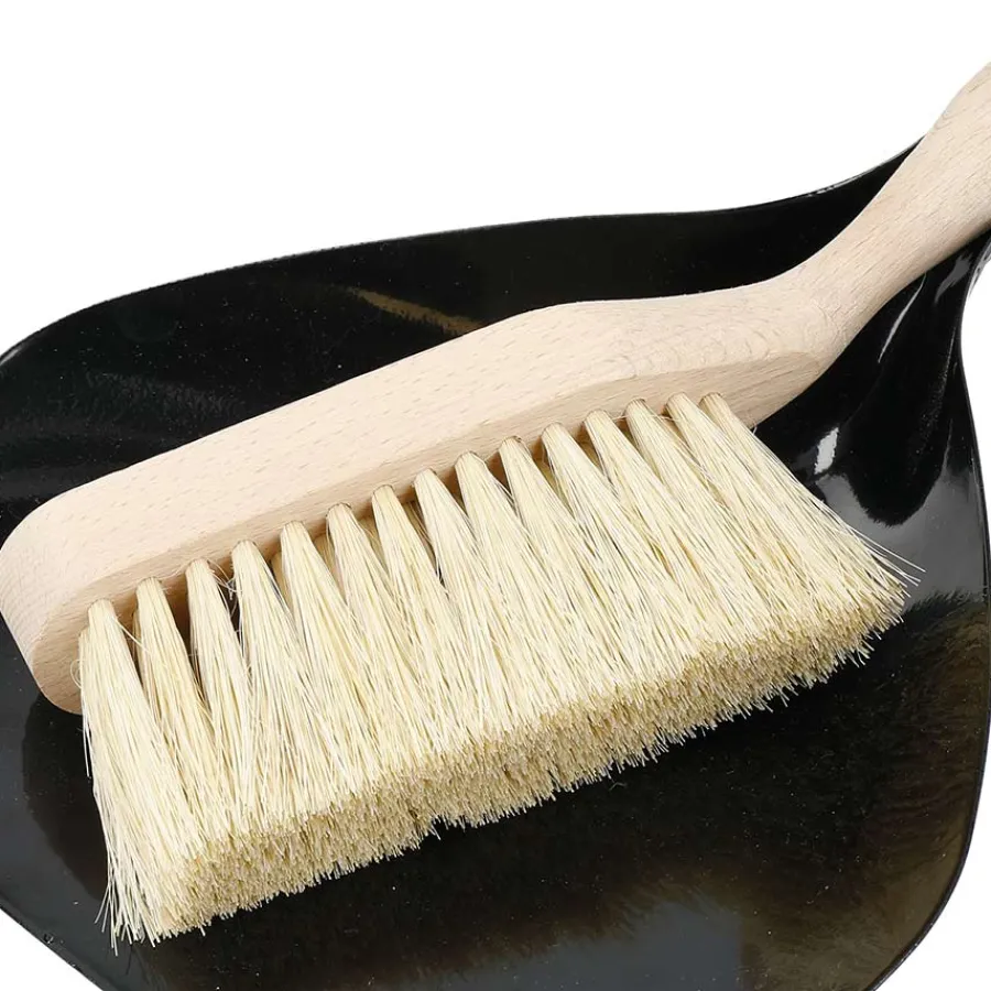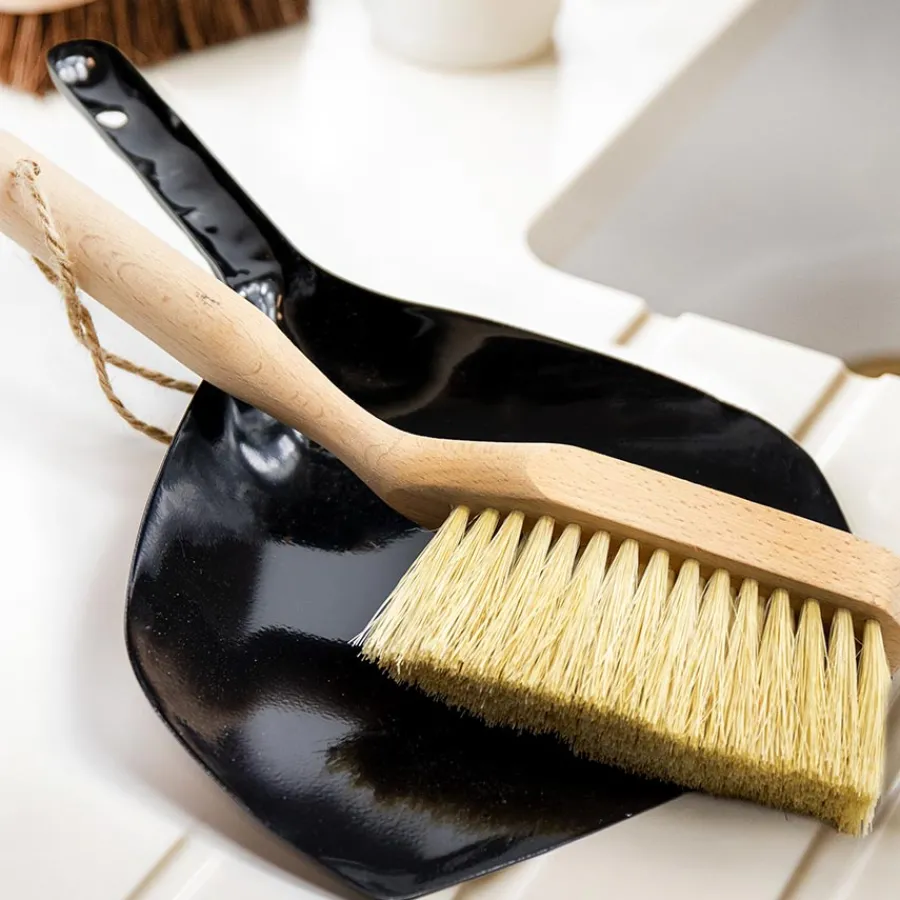 Kost og feiebrett i bøktre og resirkulert plast fra KitchenCraft Natural Elements. Serien handler om å finne måter å opprettholde et grønt hjem og en sunn planet på. Støvsamleren er laget av 100% resirkulert plast, mens rengjøringskosten er laget av bøk, et veldig hardt og slitesterkt tre. Den har også sisalbust, som er stive, men skånsomme for effektiv feiing.