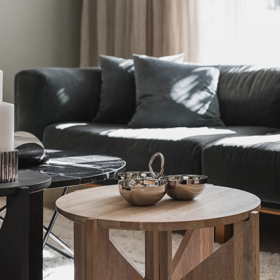 Denne smarte 3-i-1 skålen i rustfritt stål består av tre seksjoner som gjør det enkelt å servere ulike retter samtidig. Perfekt til snacks, smågodt eller dipper. Den kompakte størrelsen på 23 x 11 cm gjør den ideell for både små og store bord.Produsert i rustfritt stål 14/1, er den både slitesterk og hygienisk, og den sølvblanke finishen gir et elegant uttrykk. Passer utmerket sammen med andre serveringsdeler i Løve Vinje-serien.Håndvask anbefales for å bevare glansen og unngå riper. Denne skålen er et praktisk valg som også ser flott ut.