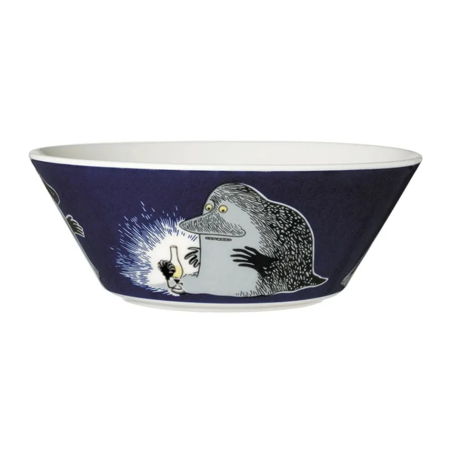 Hufsa er et ensomt vesen som kan virke skremmende der hun svever bortover bakken mens det fryser til is under henne. De populære samleobjektene i porselen fra Arabia er ildfaste og tåler ovn og mikrobølgeovn, men må stå på rist i ovnen og ikke bakeplate. Skålene kan vaskes i oppvaskmaskin.