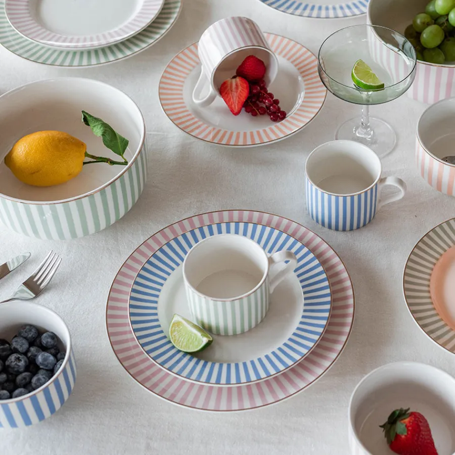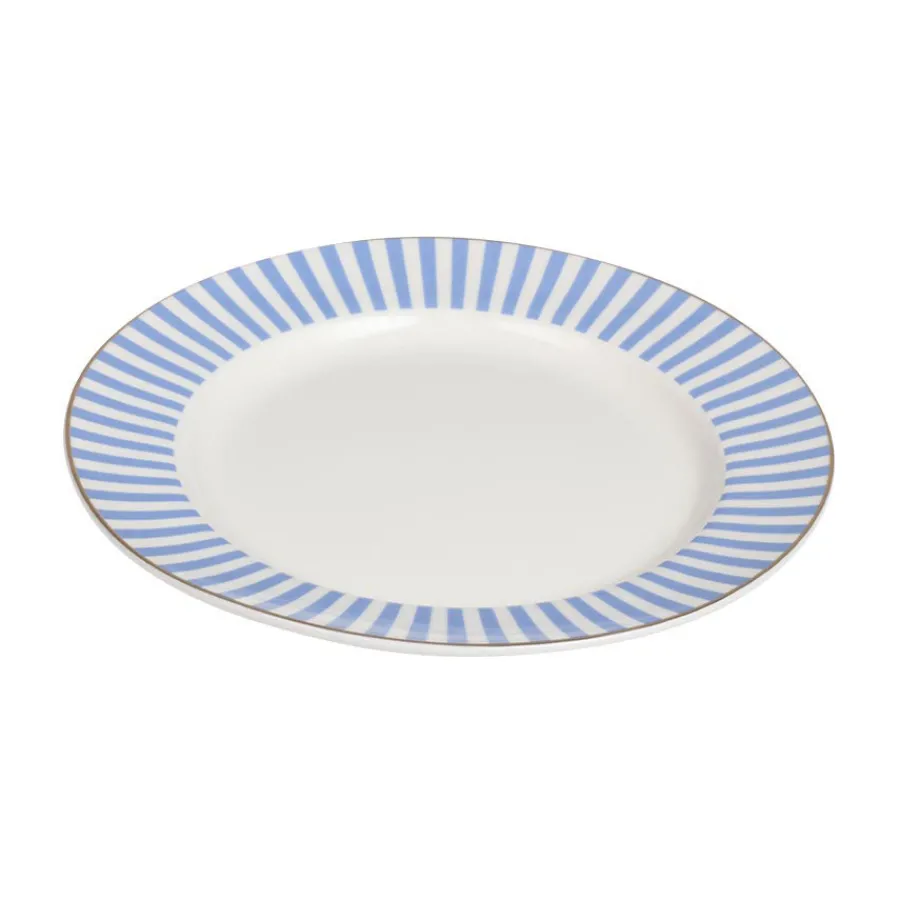 Abby-asjetten i klassisk blå med elegant gullkant gir borddekkingen et friskt, men tidløst preg. Med sin størrelse på 21 cm passer den utmerket til forretter, kaker eller små serveringer. Det stripete mønsteret i kombinasjon med gullkanten gir en balanse mellom lekenhet og eleganse.