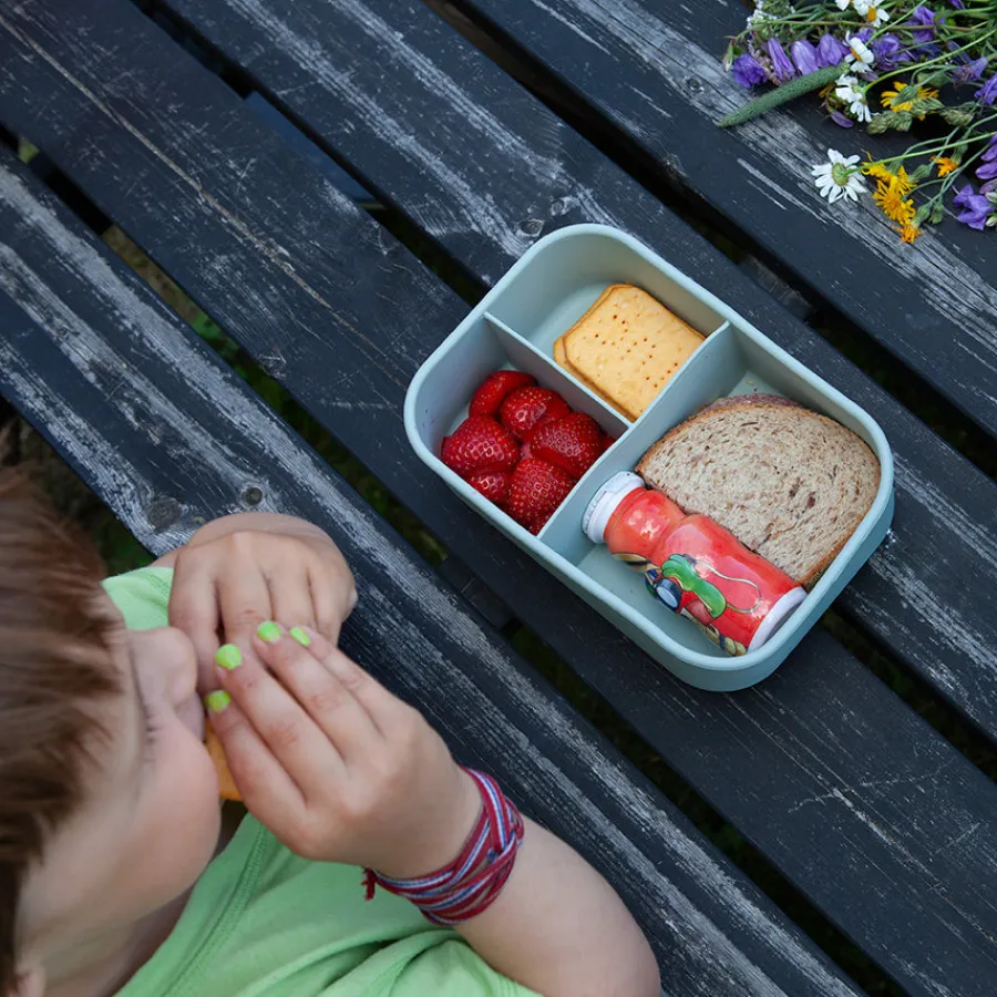 Hold mat og snacks friskt og oversiktlig med Matboks Silikon 1200 ml med 3 rom i en rolig, grønn farge. Denne praktiske matboksen er laget i fleksibel, BPA-fri silikon og rommer hele 1,2 liter – perfekt til både skole, jobb, piknik og reiser.