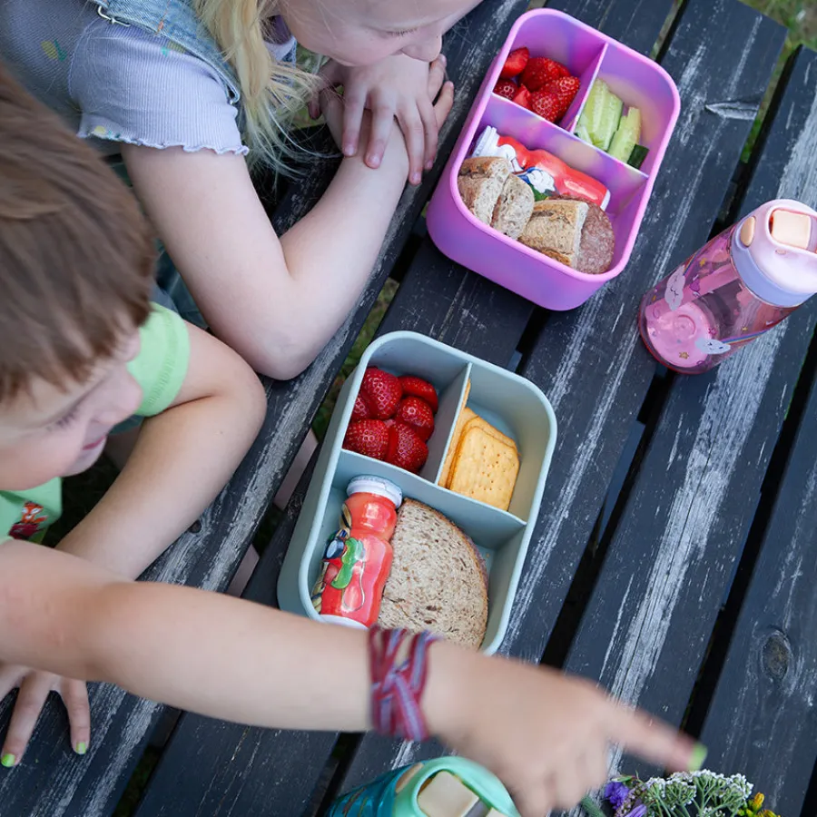 De tre separate rommene gjør det enkelt å holde ulike matvarer adskilt, enten du pakker med deg frukt, brødskiver, grønnsaker eller restemat. Takket være det slitesterke materialet tåler matboksen både mikrobølgeovn, stekeovn, fryser og oppvaskmaskin – ideell for en travel og bærekraftig livsstil.