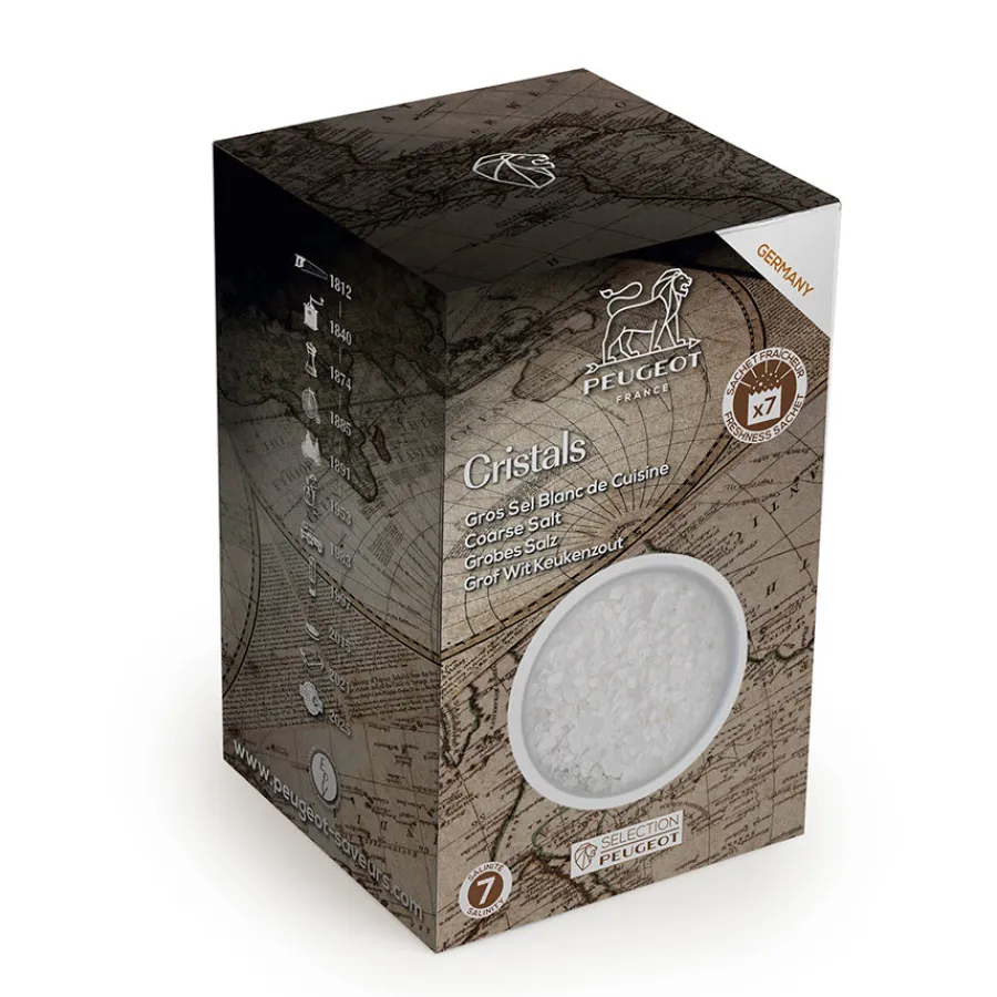 Dette naturlige hvite saltet på 350 gram har en mild og ren smak, og er spesielt utviklet for å brukes sammen med Peugeots keramiske saltkverner. Saltet består av store, tørre krystaller som gir optimal kverningsytelse og jevn fordeling. Perfekt til hverdagsmat og bordbruk.