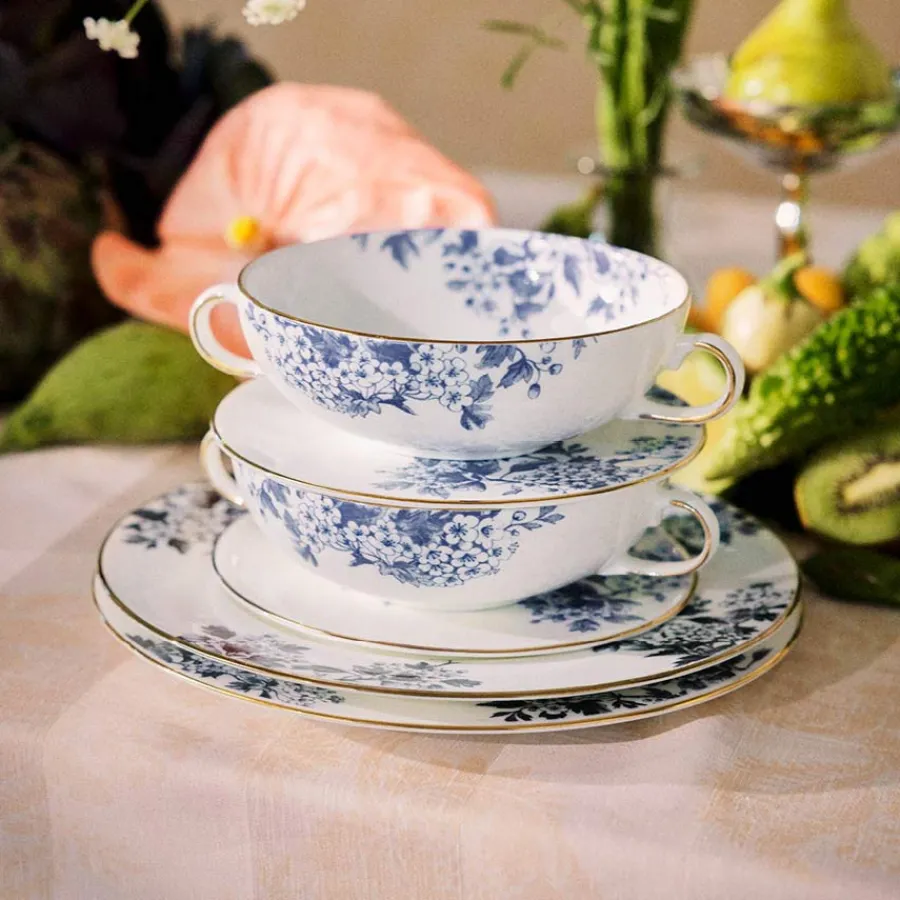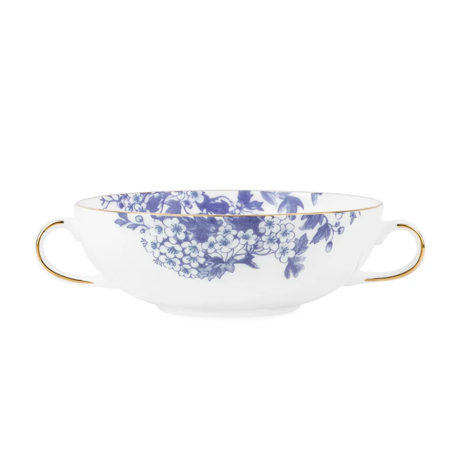 Denne suppekoppen i en elegant blå tone gir ethvert måltid et sofistikert preg. Koppen har plass til 40 cl og er dekorert med en vakker, håndmalt gullkant som gir et eksklusivt inntrykk. Perfekt for varme supper og lune stunder. Kombiner den med andre farger for en spennende borddekking.