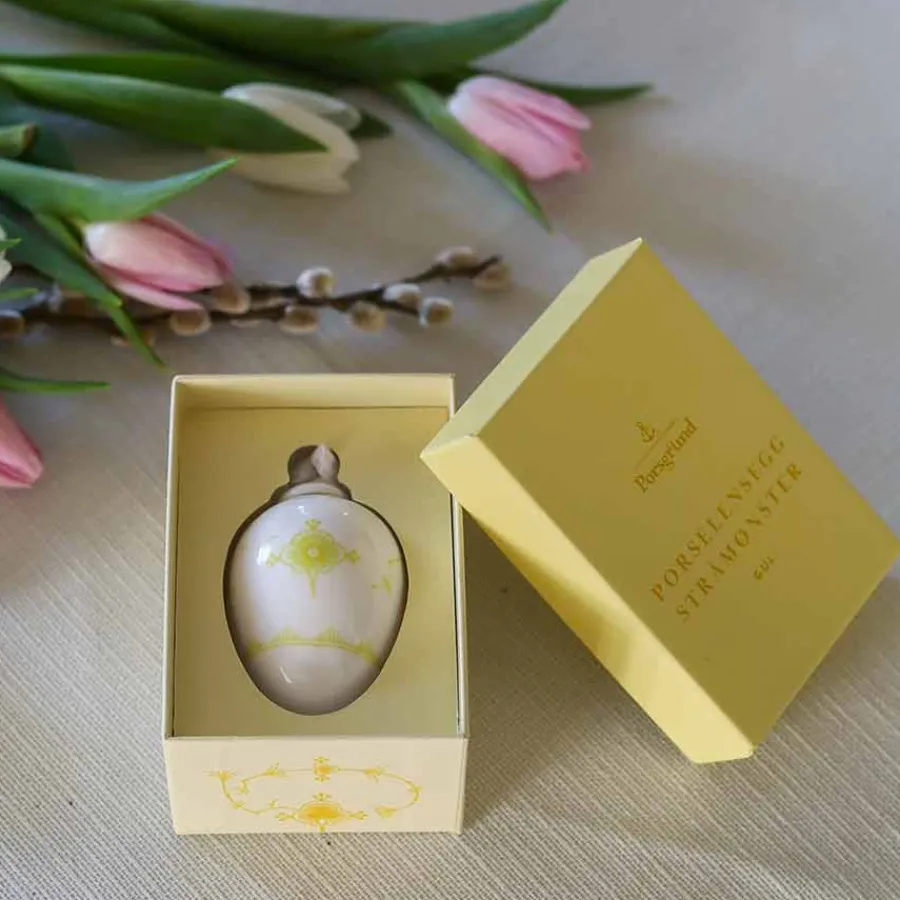 Skap en varm og innbydende påskestemning med dette elegante porselensegget fra Porsgrunds Porselænsfabrik. Med det klassiske Stråmønsteret i en nydelig gulfarge, kombinerer dette egget tradisjon og håndverk i en tidløs dekorasjon. Perfekt for å gi hjemmet et eksklusivt preg til påsken! Dette 4,5 cm høye porselensegget passer perfekt på påskebordet, i en dekorativ skål eller som del av en større samling. Kombiner med andre farger for en stilfull helhet!