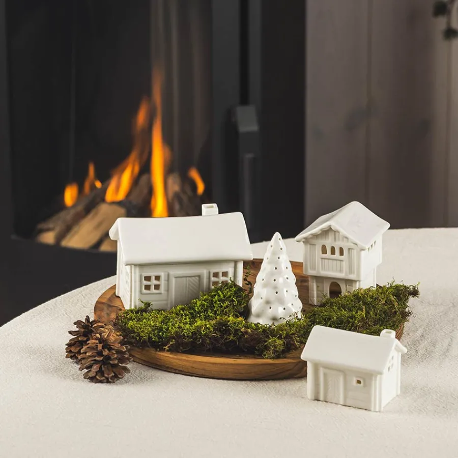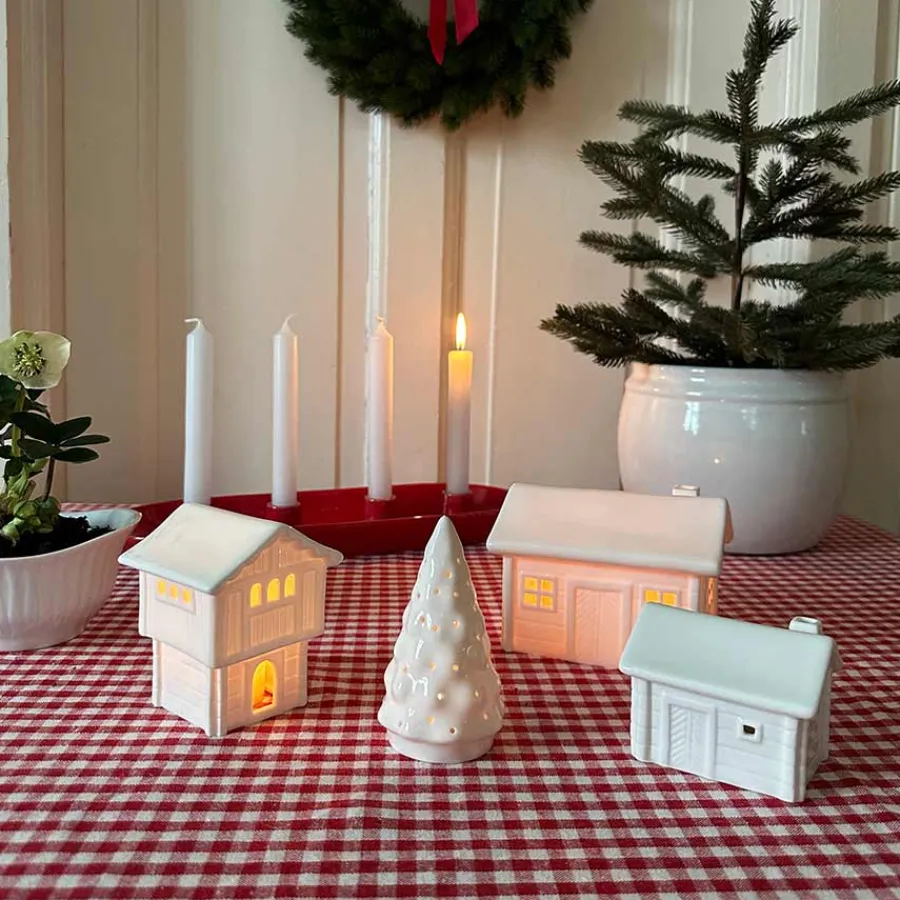 Veslestugu med pipe fra Porsgrunds Porselænsfabrik og serien Jul På Tunet. Det søte porselenshuset er inspirert av laftede trehus og designet som en hyllest til våre forfedre, kulturen og den rike historien som finnes rundt om i Norge. Porselenshuset er fremstilt i et design inspirert av norsk byggeskikk fra 1700 – 1800-tallet og måler 13,4 x 10,8 cm. Inkluderes LED-lys som kan plasseres inni huset.