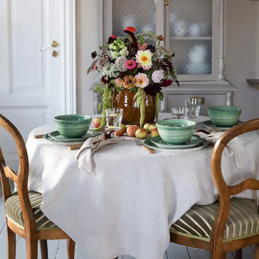 - Tidløs grønnfarge som skaper en rolig og elegant borddekking