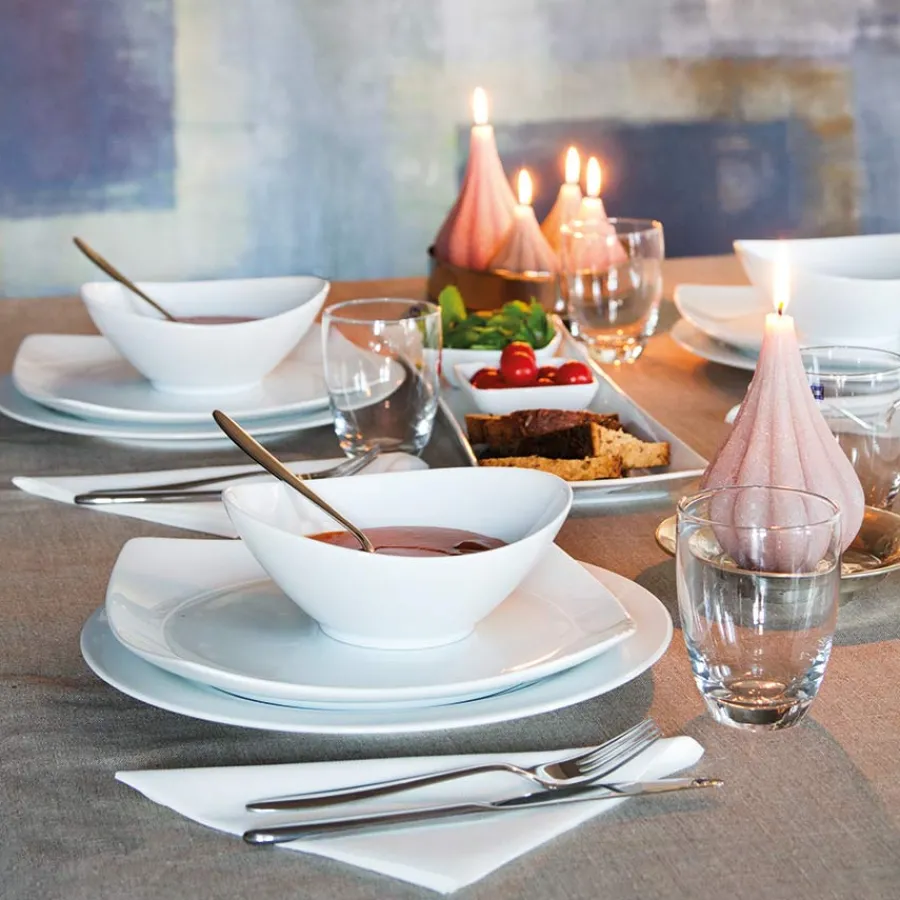 Firkantet tallerken på 21 cm fra Sense, et tidløst servise fra Porsgrunds Porselænsfabrik. Tallerkenen er perfekt til frokost eller lunsj og har et klassisk utseende med et moderne innslag i form av den firkantede formen. Frokosttallerkenene kan vaskes i oppvaskmaskin og har livstidsgaranti på kantskår.