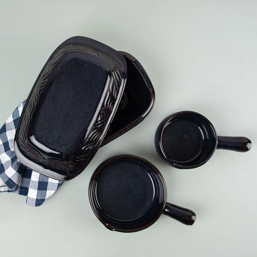 Terra form med håndtak 15 cm i fargen Noche er perfekt for små porsjoner, gratenger, tapas eller servering direkte fra ovn til bord. Den kompakte størrelsen gjør den ideell til enkle hverdagsretter eller som del av en større tapasoppsetning.