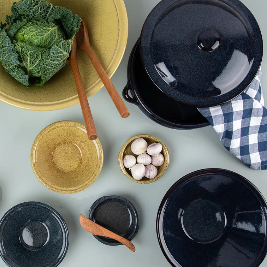 Terra Tapasform på 12 cm i fargen Ocre er perfekt for servering av småretter, snacks eller desserter. Den varme fargen og håndlagde finishen skaper et innbydende uttrykk.Formen tåler høy varme og kan gå rett fra ovn til bord.