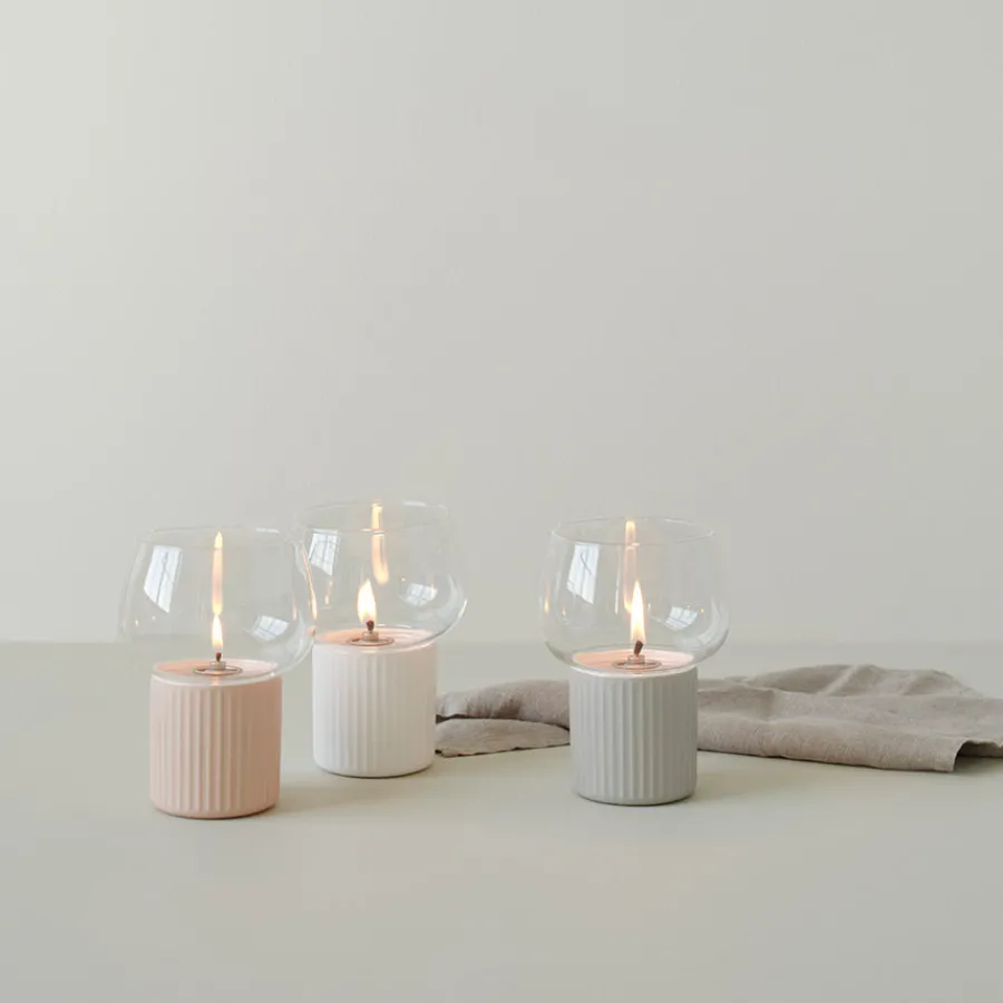 De vegetabilske oljelysene som passer til, avgir færre sotpartikler enn stearinlys. Disse selges separat og kan kjøpes her.