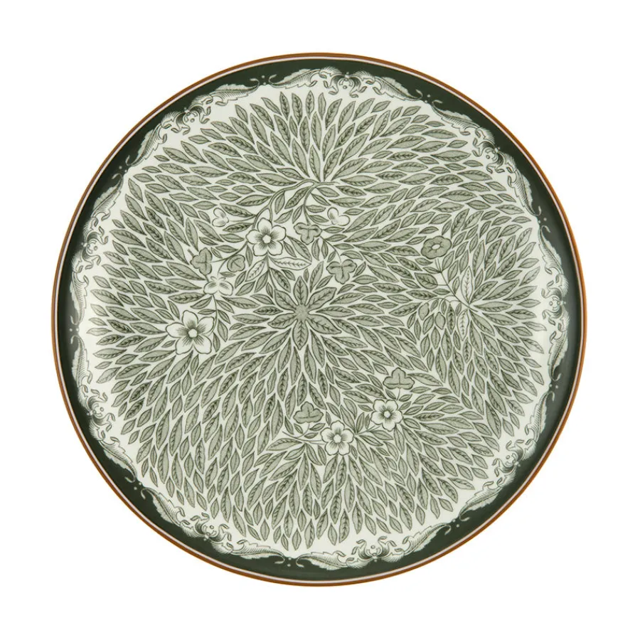 En allsidig tallerken på 20 cm, ideell for lunsj, forretter eller desserter. Med den dype grønne fargen gir denne Ostindia Floris-tallerkenen en følelse av organisk eleganse til bordet. Den historisk inspirerte fargen kombineres med det klassiske Ostindia-mønsteret, og skaper en tallerken som er både vakker og funksjonell.