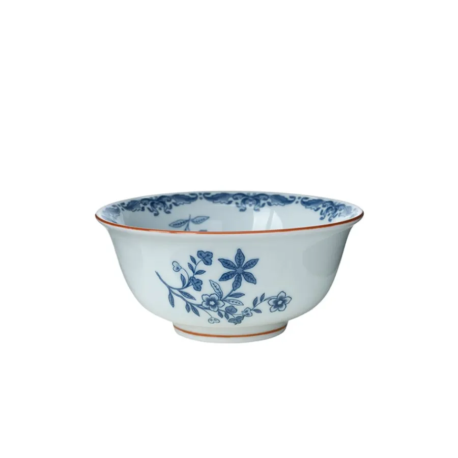 Skål i 50 cl fra Rørstrands ikoniske serviset Ostindia. Serviset er laget i feltspatporselen og er i Sverige kåret til århundrets servise. Den delikate blomsterdekoren er hentet fra en bit av kinesisk porselen funnet i et sunket kinesisk skip utenfor Gøteborg i 1746. Serviset kan vaskes i oppvaskmaskin og settes i mikrobølgeovn.