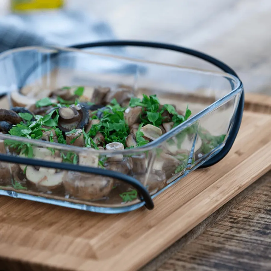 Kvadratisk ildfast form fra Rosendahl og serien Grand Cru. Formens enkle og delikate uttrykk gjør den egnet til tilberedelse i ovnen og til servering av maten. Formen er fremstilt i blyfritt glass og tåler ovn, mikrobølgeovn samt rengjøring i oppvaskmaskin.