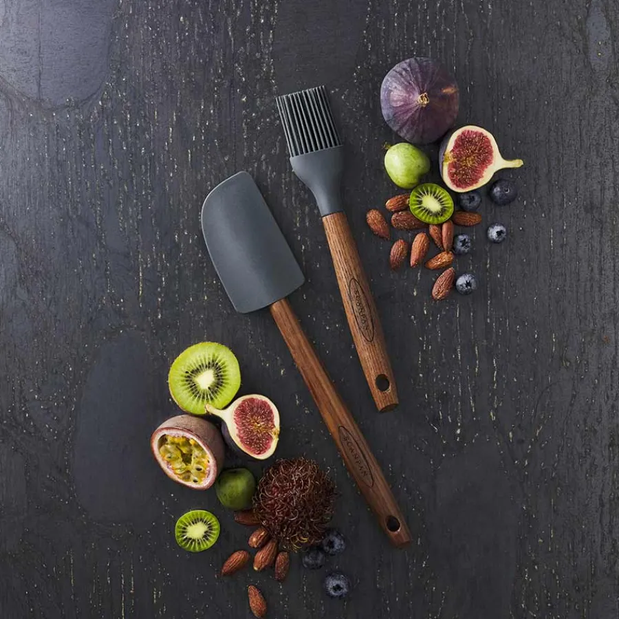 Bakepensel i silikon og karbonisert ask, utmerket til baking og marinering. Silikonhodet på bakepenselen tåler opptil 230°C og er avtagbart som gjør at det enkelt kan vaskes i oppvaskmaskin. Håndtaket i tre rengjøres for hånd.