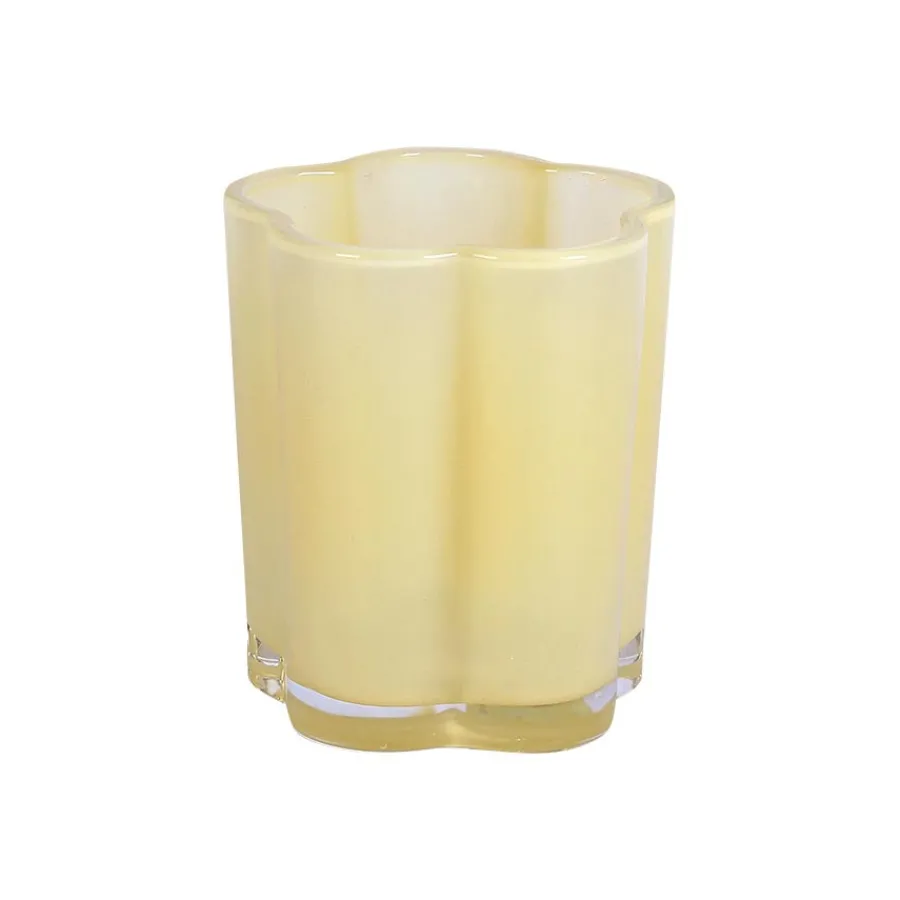 Denne blomsterformede lyslykten i strålende gulfarget glass gir et varmt og solfylt preg til hjemmet ditt. Når lyset tennes, skaper den et vakkert skinn som lyser opp rommet med en lun atmosfære. Den unike formen tilfører et dekorativt element, enten du bruker den alene eller i kombinasjon med andre lykter. Perfekt for å gi en følelse av lys og glede på mørke kvelder. Laget av slitesterkt glass som reflekterer lyset på en elegant måte.