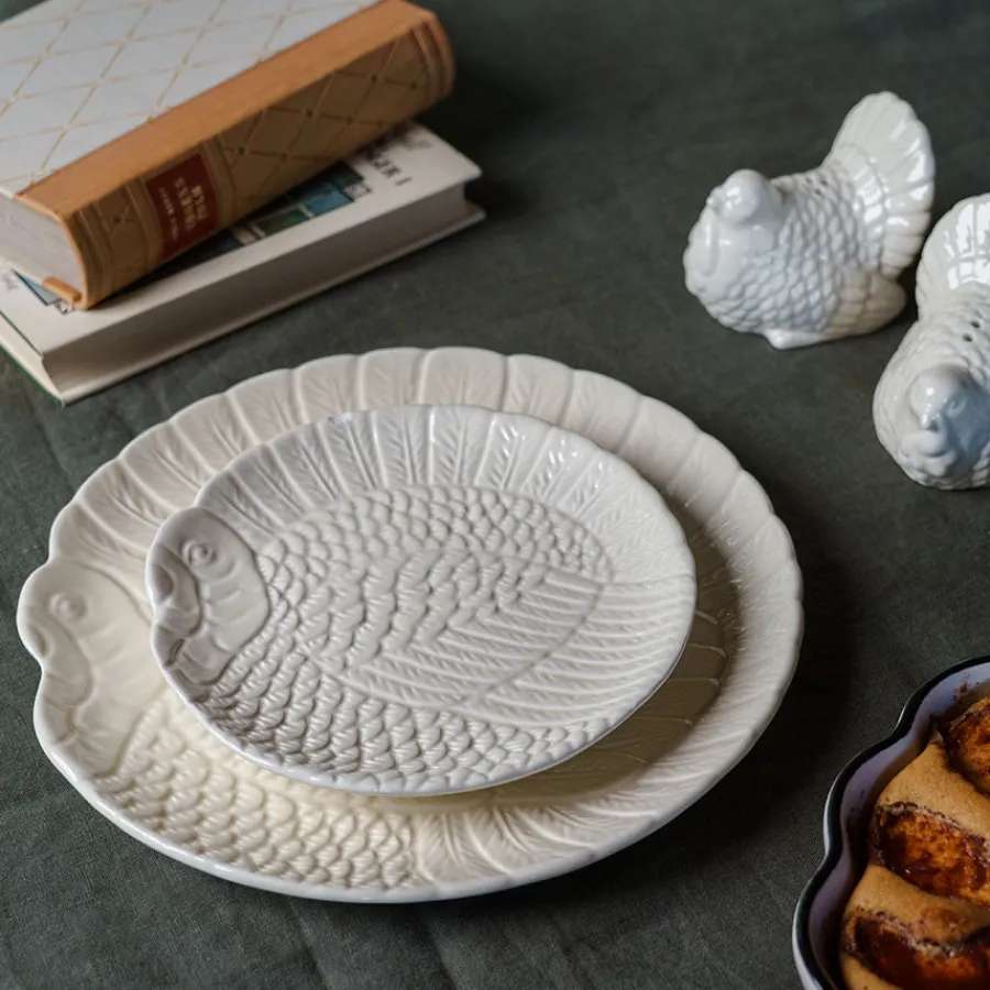 Skap en lun og personlig borddekking med denne keramikk-tallerkenen på 18 cm, formet som en fugl. Den er perfekt til forretter, dessert eller som en liten serveringstallerken. Den myke kremfargen gir et tidløst uttrykk, mens det detaljerte fuglemønsteret tilfører karakter og varme til bordet.