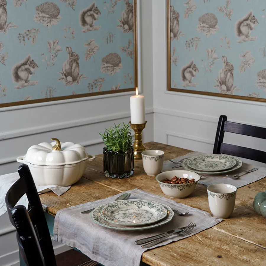Skålen på 16 cm med grønt vintage-print er et vakkert og praktisk tillegg til Fall Collection. Perfekt til frokostblanding, salat, snacks eller dessert. Den dekorative kanten og blomsterprintet gir en klassisk, landlig følelse.
