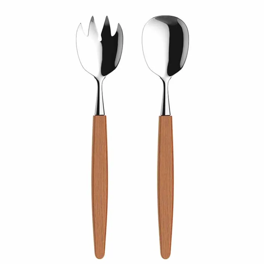 Gi salatserveringen et løft med Skaugum salatsett i teak. Settet består av salatskje og salatgaffel, begge med rustfritt stål og vakre, håndlagde teak-skaft. Designet for å ligge godt i hånden og se vakkert ut på bordet.Settet passer utmerket til alt fra grønne salater til pastaretter og gryter. Teaken gir en naturlig og varm kontrast mot stål, og eldes med verdighet. Produsert med stolthet på Geilo, der hvert produkt bærer preg av godt, norsk håndverk. Dette salatsettet blir en trofast del av middagsbordet i mange år fremover.