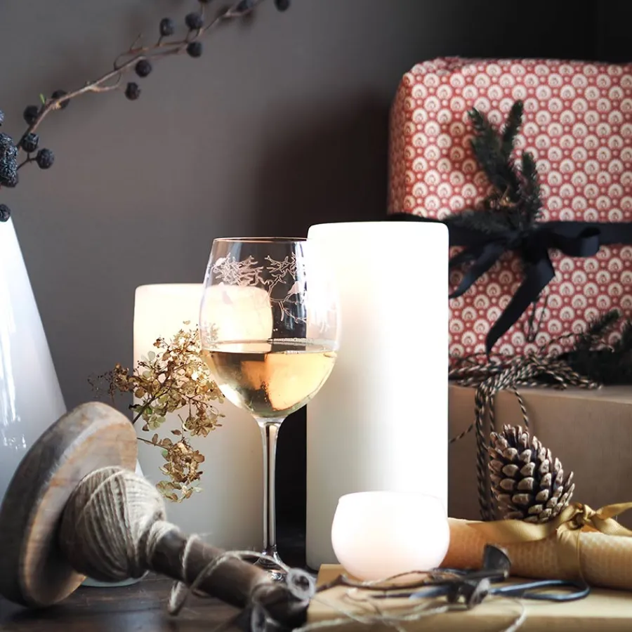 Glasset kan vaskes på skånevask i oppvaskmaskin og bruk av glansemiddel anbefales