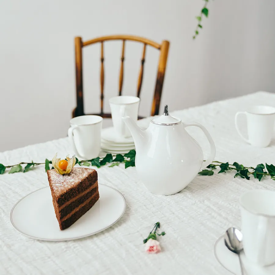 Kan vaskes i oppvaskmaskin, men skånevask anbefales. For bevaring av glas anbefales bruk av glansemiddel. Serviset er dekorert med platinadekor, og må derfor ikke brukes i mikrobølgeovn.