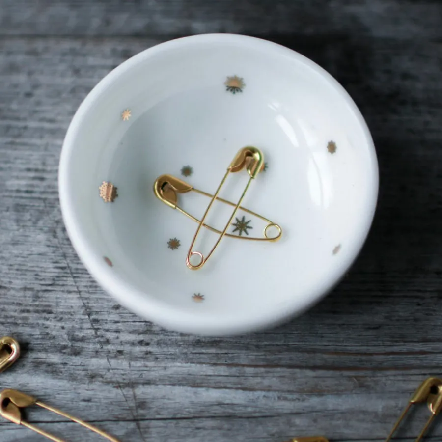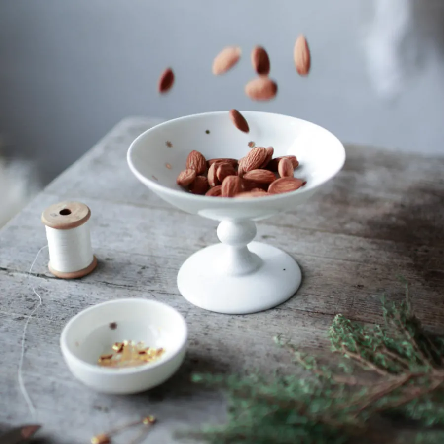 Liten bolle på 6 cm fra Wik & Walsøe og den eventyrlige serien Stjernedryss. Den flotte serien har fått sine dekorelementer fra den enkle og rene stjernehimmelen som skinner på en stille vinternatt. Skålen kan brukes som vakker dekor, til oppbevaring av smykker eller som en liten serveringsskål til konfekt.