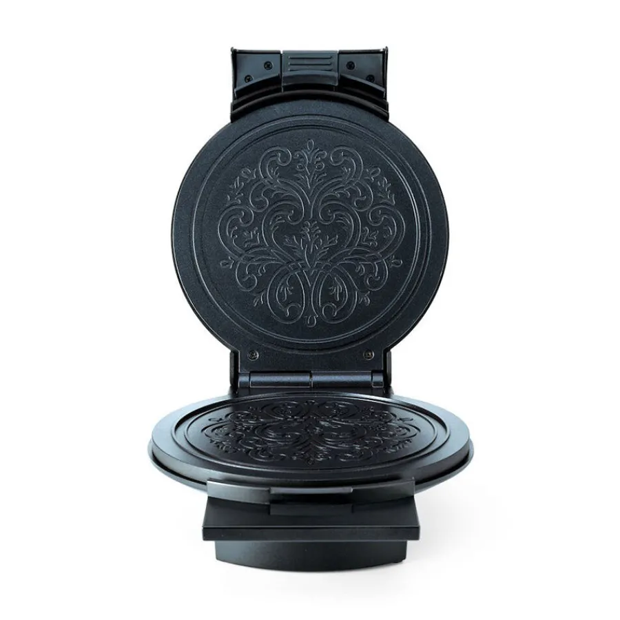 Culture krumkakejern i sort fra Wilfa. Krumkakejernet er utformet med det tradisjonsrike østerdalsmønsteret og kommer med en effekt på 1000 watt. Utstyrt med en nøyaktig termostat som du selv kan stille inn etter ønsket resultat, og belagt med dobbelt slippbelegg som gjør at krumkaken slipper lett fra jernet, og samtidig sikrer en effektiv rengjøring. Kan oppbevares stående.