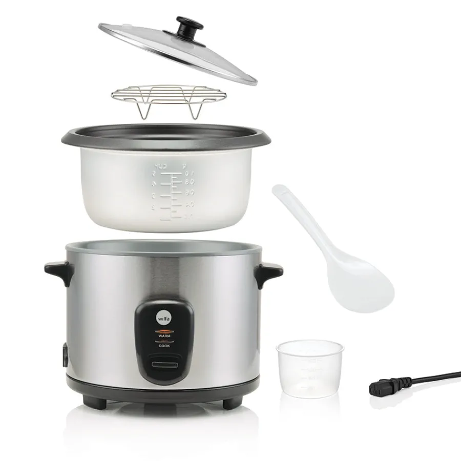 Riskoker på 2 liter uformet i stål fra Wilfa. Å koke ris er ikke alltid like lett, men med denne praktiske riskokeren fra Wilfa får du den perfekte risen på enkelt vis. Riskokeren kan lage opptil 2 liter med ris, og har en enkel brukervennlighet. Mål opp riktig mengde med ris og vann, trykk på knappen og vipps så er det bare å vente til risen er ferdigkokt.