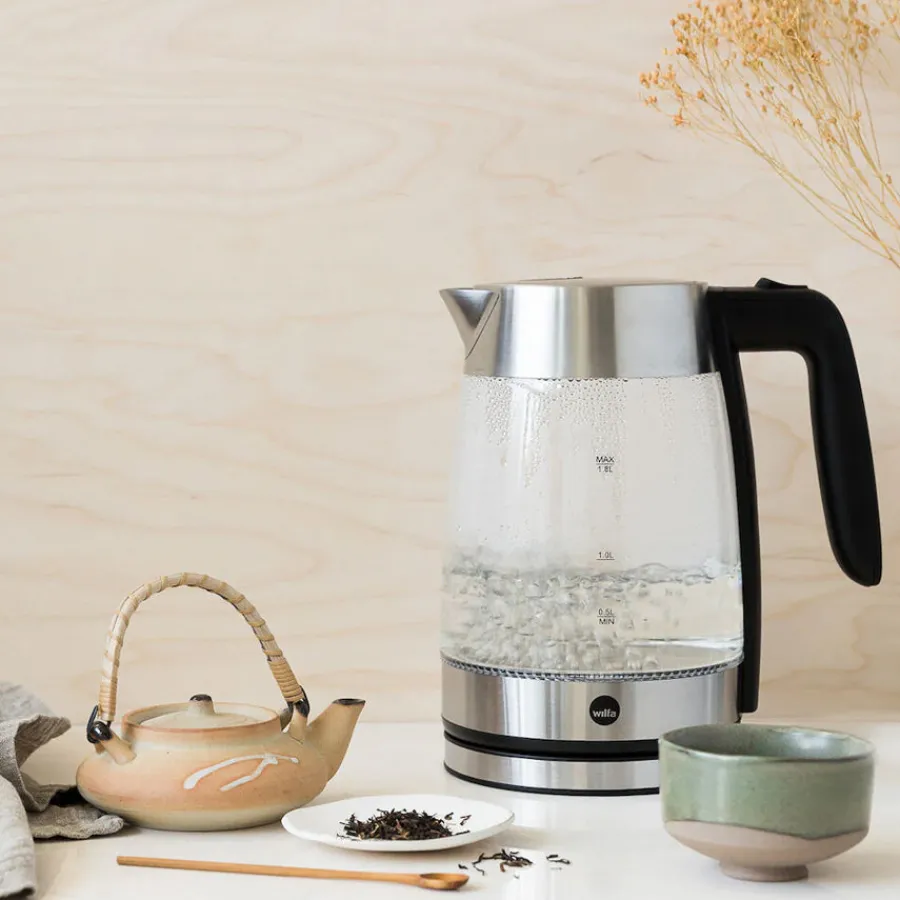Vannkoker fra Wilfa er laget av slitesterkt borosilikatglass, som tåler høye temperaturer og er lett å rengjøre. Med en kraftig 2200 Watt motor koker den raskt opp 1,8 liter vann, ideelt for daglig bruk. Den er enkel å betjene med én hånd og har en automatisk avstengningsfunksjon som øker sikkerheten, ved både koking og tørrkoking.