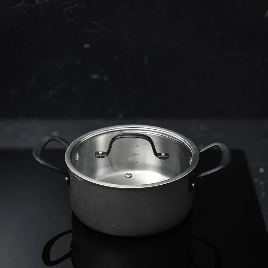 Med sin sjenerøse kapasitet er denne gryten ideell for supper, gryteretter og store måltider. Laget i 18/10 rustfritt stål med en 2,5 mm trelagskonstruksjon sikrer gryten jevn varmefordeling, noe som gjør den perfekt for både småkok og langvarig tilberedning. Det oksiderte stålet og de sorte håndtakene gir et stilig, maskulint uttrykk som matcher kjøkkenets estetikk. Gryten er ovnssikker opptil 240°C og fungerer på alle varmekilder.