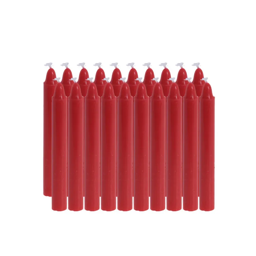 Pakke med 20 stk små lys til juletre og englespill. Lysene kommer i en vakker julerød tone og måler 10,5 cm x 1,1 cm.